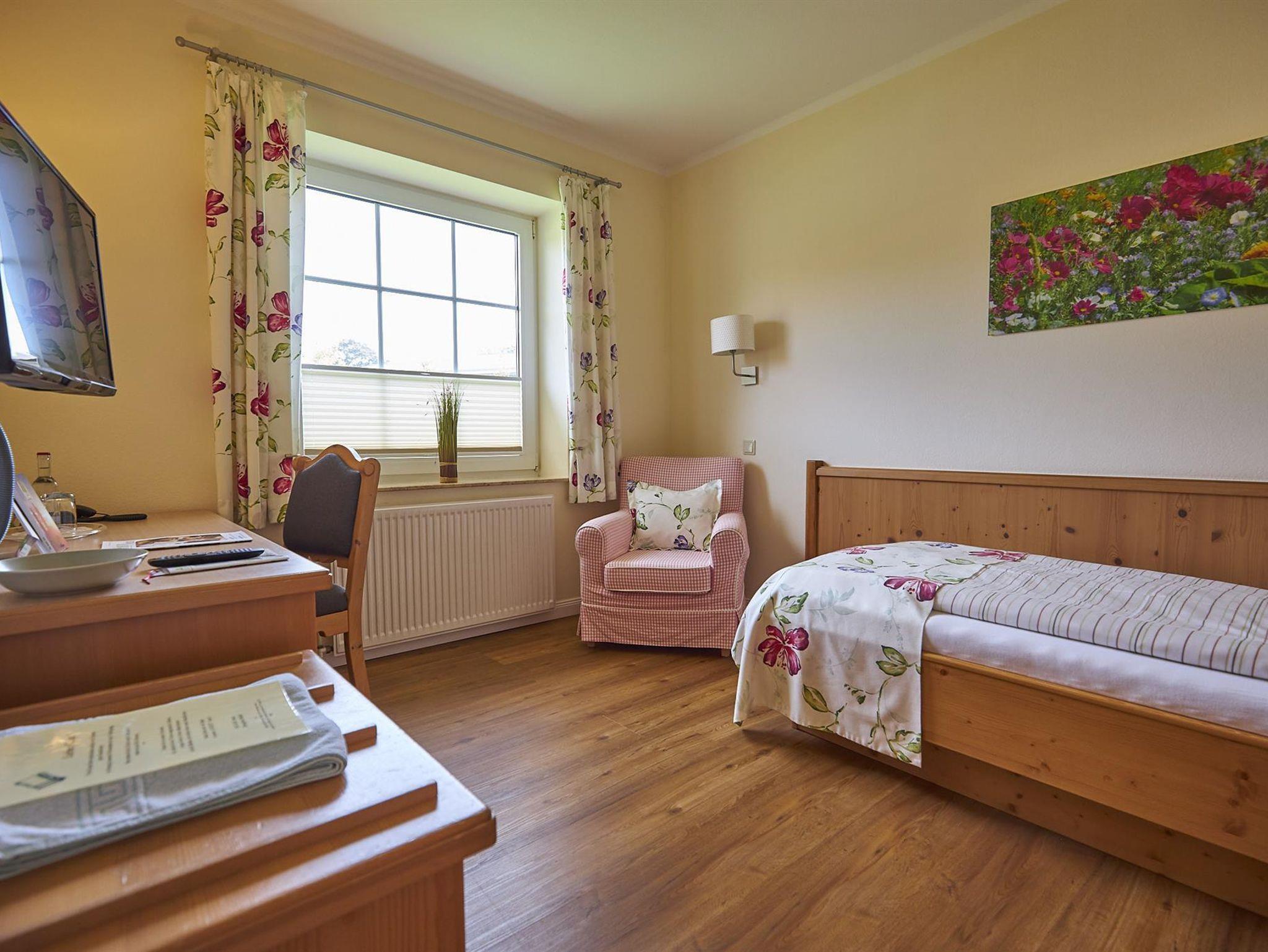 Genießen Sie Ruhe und Komfort im Einzelzimmer der Strengliner Mühle mit Wellnessbereich und regionaler Küche.