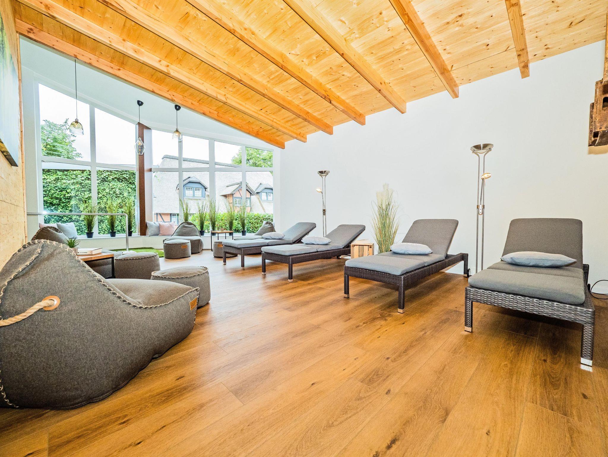 Die nahe Umgebung lädt zum Spaziergang ein, zur Radtour oder zum Entspannen. Das große umliegende Grundstück mit Mühlenbach und Mühlenteich sowie Liegewiese trägt zur Erholung und zum Wohlfühlen bei. Entspannen Sie sich im Wellnessbereich Auszeit-Insel mit Sauna.