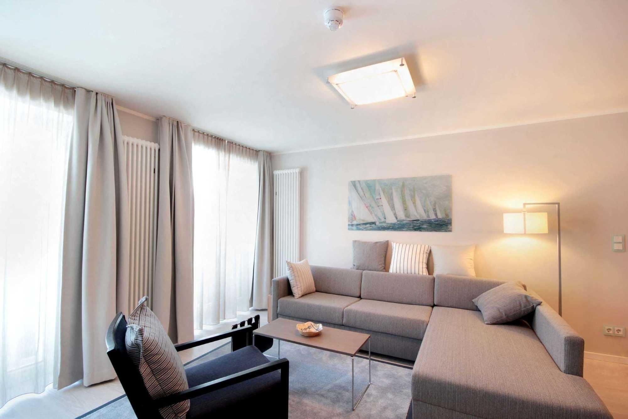 Der stilvoll eingerichtete Wohnbereich, mit Zugang zum Balkon, ist mit einer Sitzgruppe mit Schlaffunktion und Flachbild-TV ausgestattet.