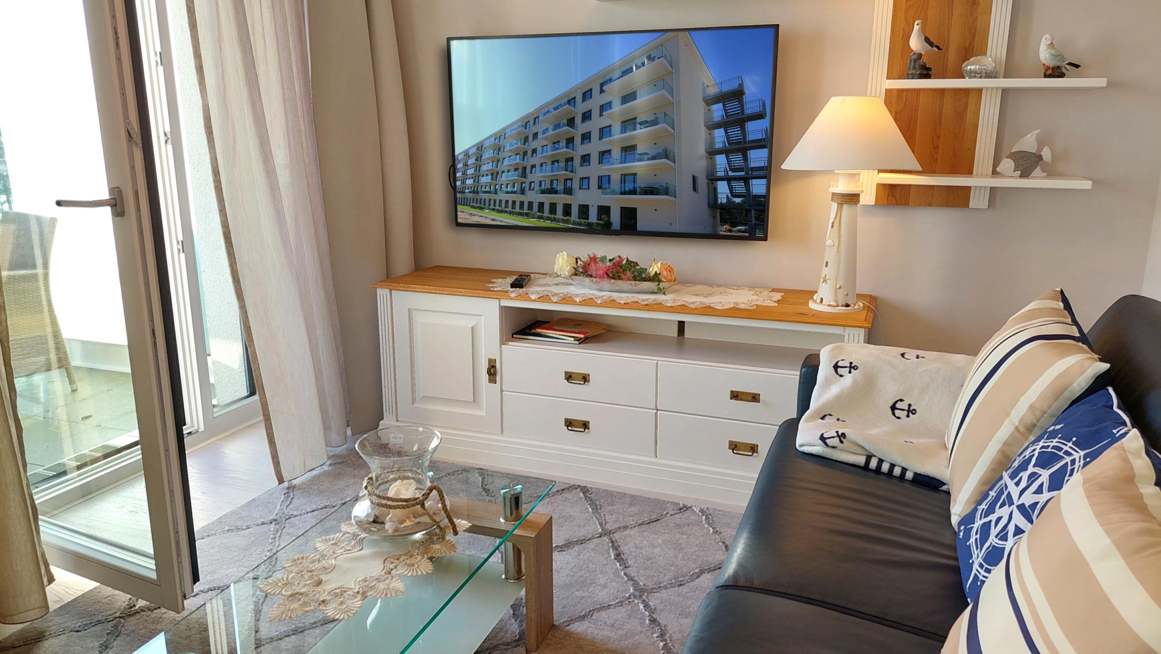 Zur technischen Ausstattung gehört ein Smart-TV samt Blu-Ray-Player, eine Musikanlage, sowie ein kostenfreies WLAN-Netz.