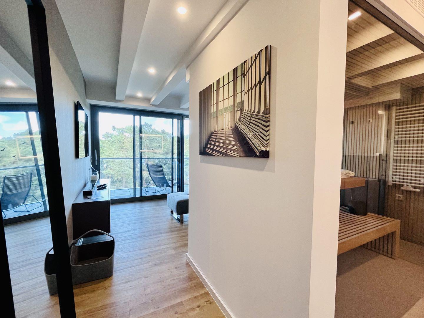 Modernes Maisonette-Appartement 'Purbaltic' in Prora mit direktem Strandzugang, Seeblick und luxuriöser Sauna.
