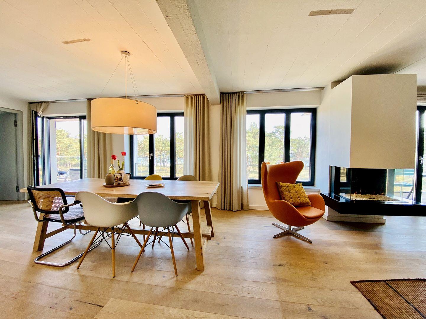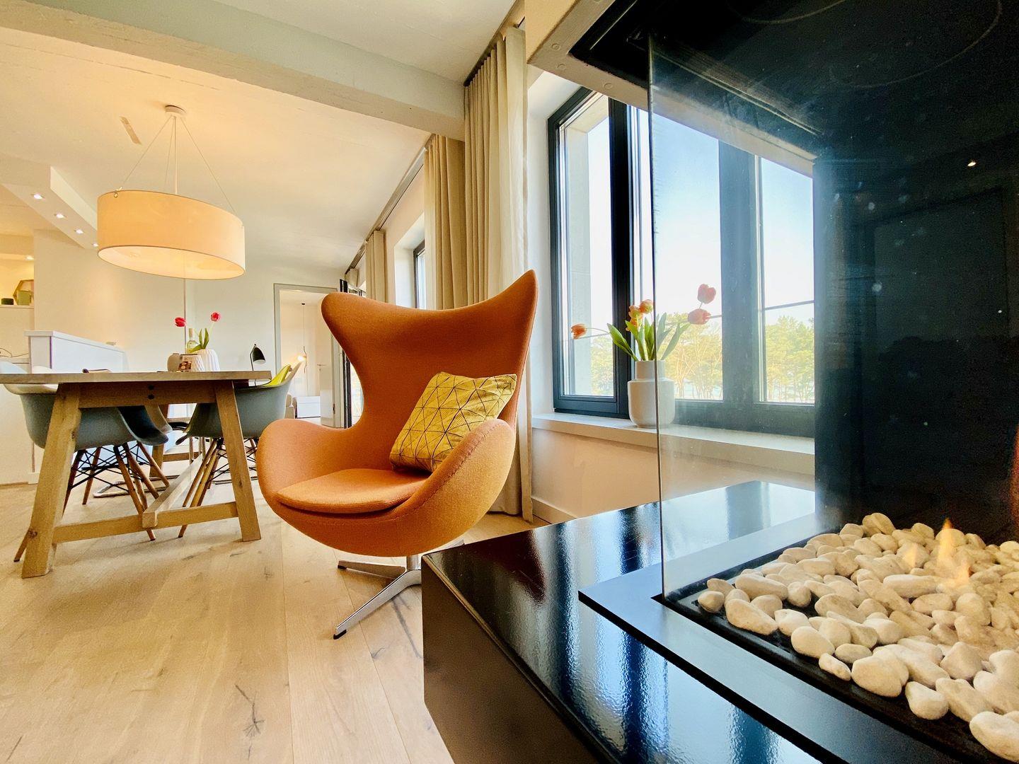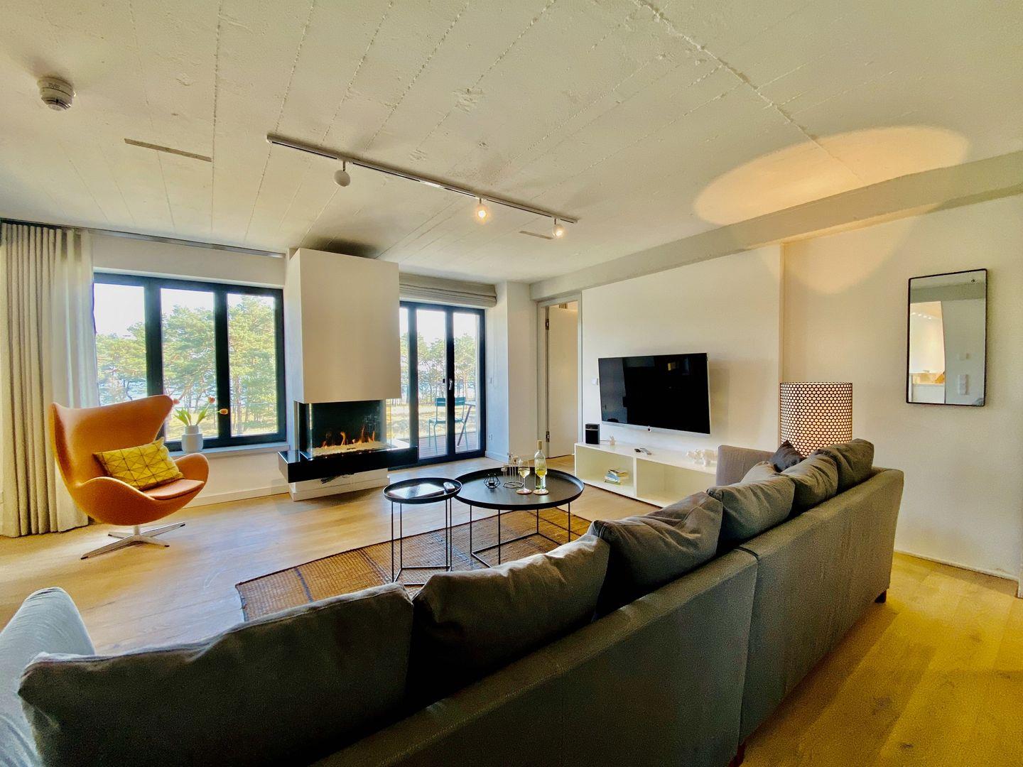 Exklusive Ferienwohnung Meerloft 13 in Prora mit Seeblick, Sauna und Kamin auf 105 m² für entspannte Urlaubstage.