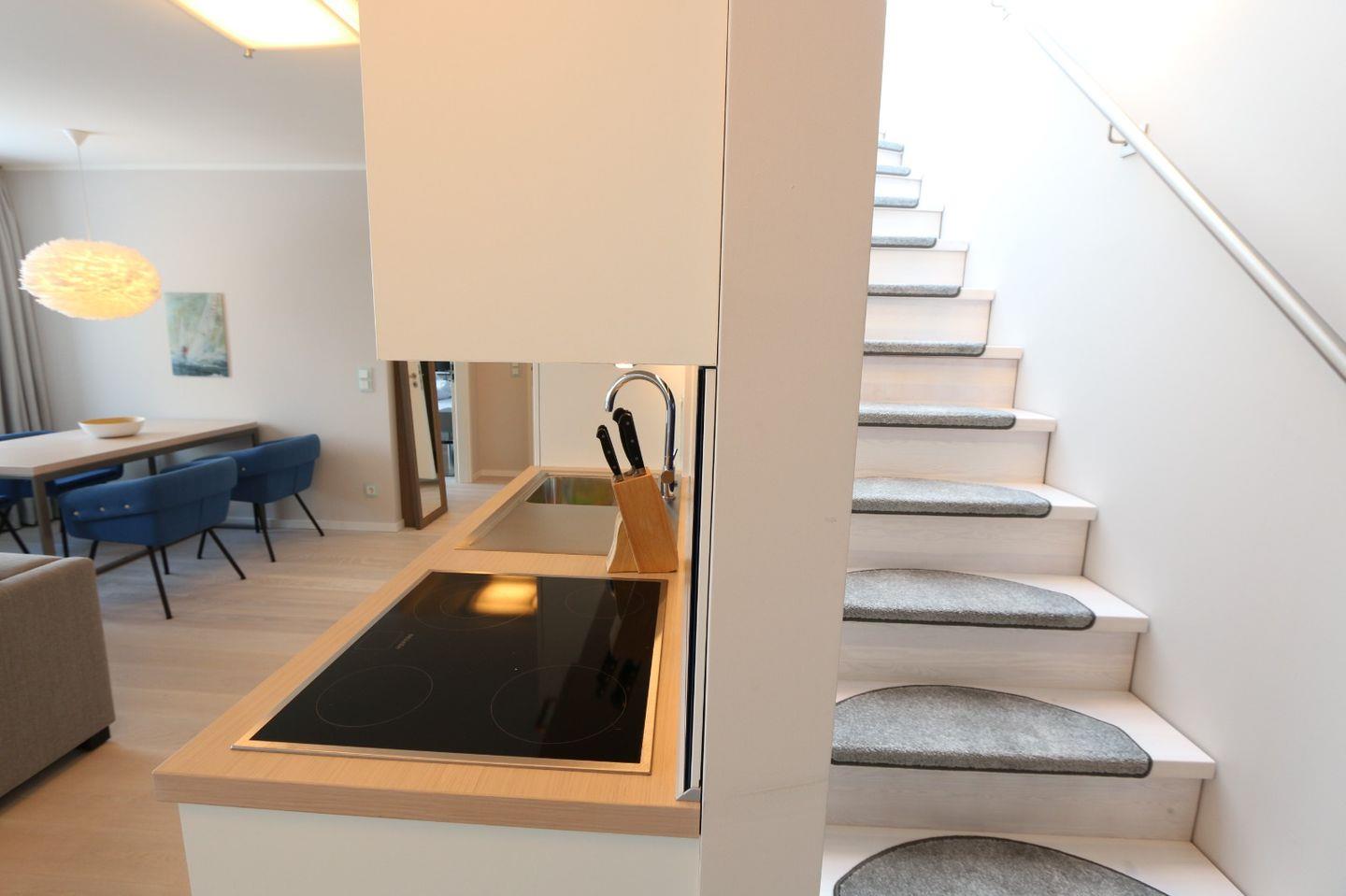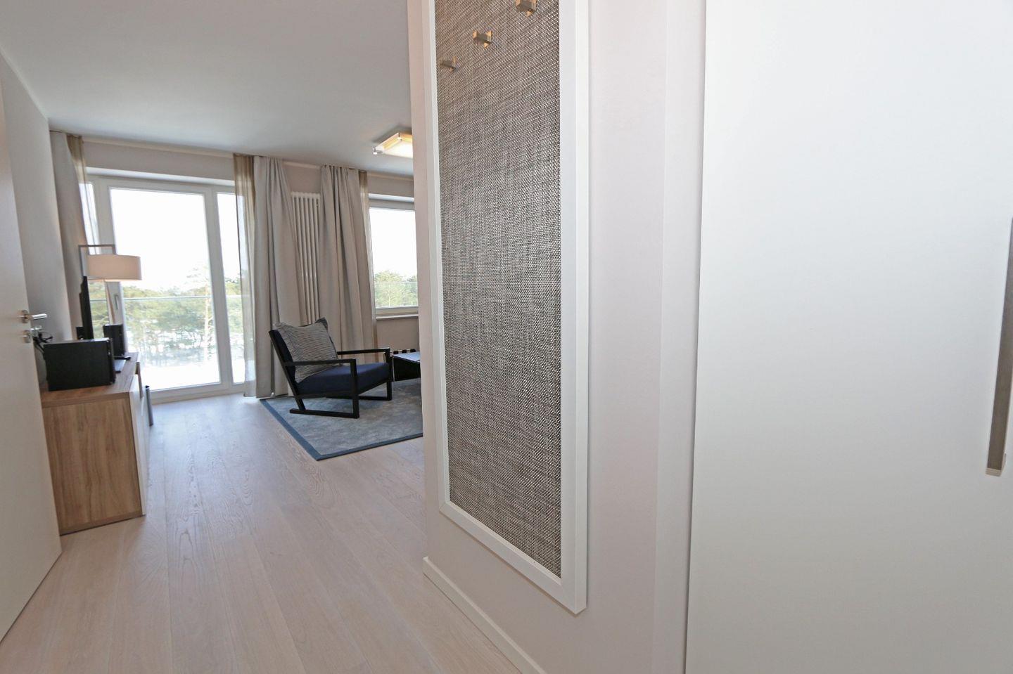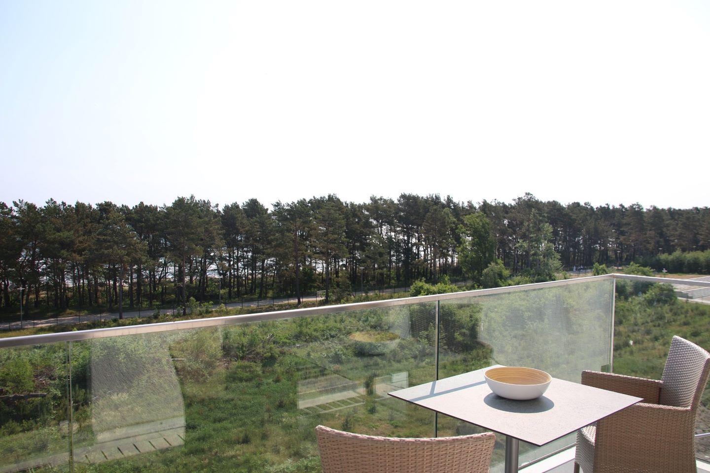 Die Ferienwohnung Meerzeit in Prora bietet 100 m² mit Dachterrasse, Sauna und direktem Strandzugang für erholsame Urlaubstage.