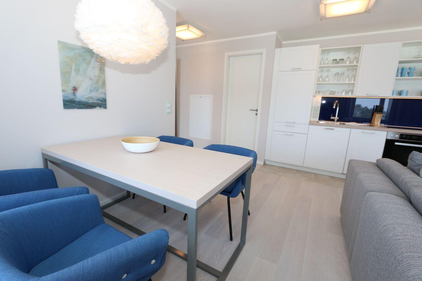 In der Ferienwohnung „Meerzeit“ im Block 1, Südstrand 108 beginnt der Urlaub direkt am Meer. Zwei gemütliche Schlafzimmer, ein heller Wohn- und Essbereich sowie eine voll ausgestattete Küche sorgen für entspanntes Ankommen. Die möblierte Dachterrasse lädt zum Genießen der Meeresluft ein. Zwei Parkplätze, direkter Strandzugang, WLAN, Waschmaschine, Trockner und zwei Bäder – eines mit Sauna – bieten hohen Komfort. Indoor-Pool, Fitnessbereich und Sauna befinden sich im selben Haus und sind gegen Gebühr vor Ort nutzbar.