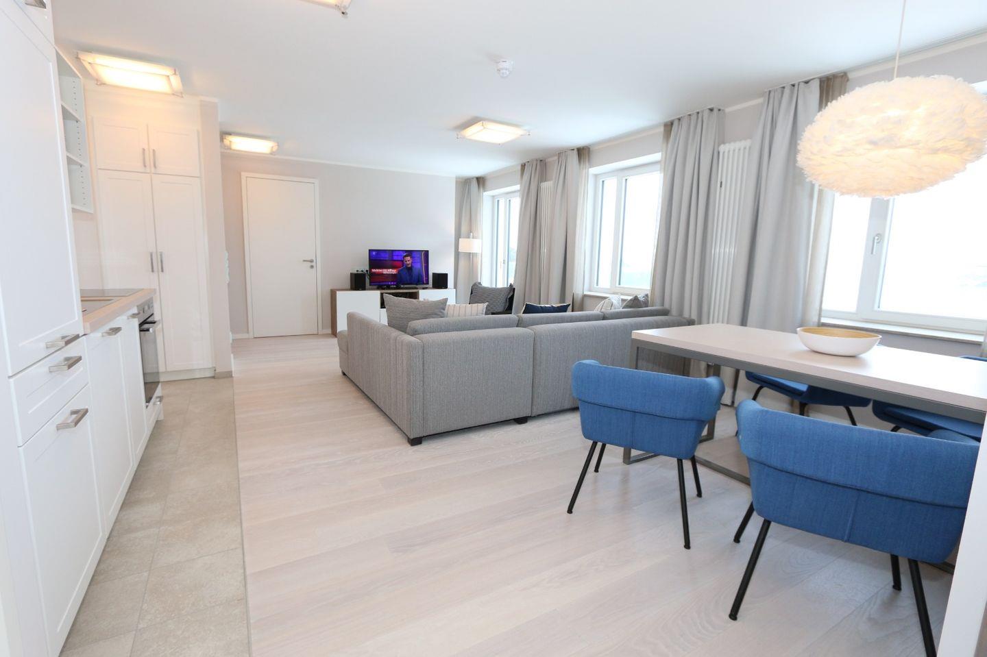 FeWo Meerzeit: Sonnige FeWo 100m² – 2 Schlafzimmer, Dachterrasse und Wellness