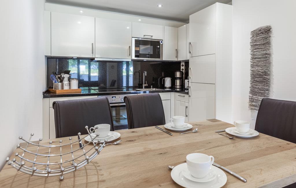 Die moderne Wohnung erwartet ihre Gäste nur wenige Schritte vom wunderschönen Strand entfernt. Genießen Sie dank hoher Decken im Wohnbereich ein besonders großzügiges Wohngefühl.