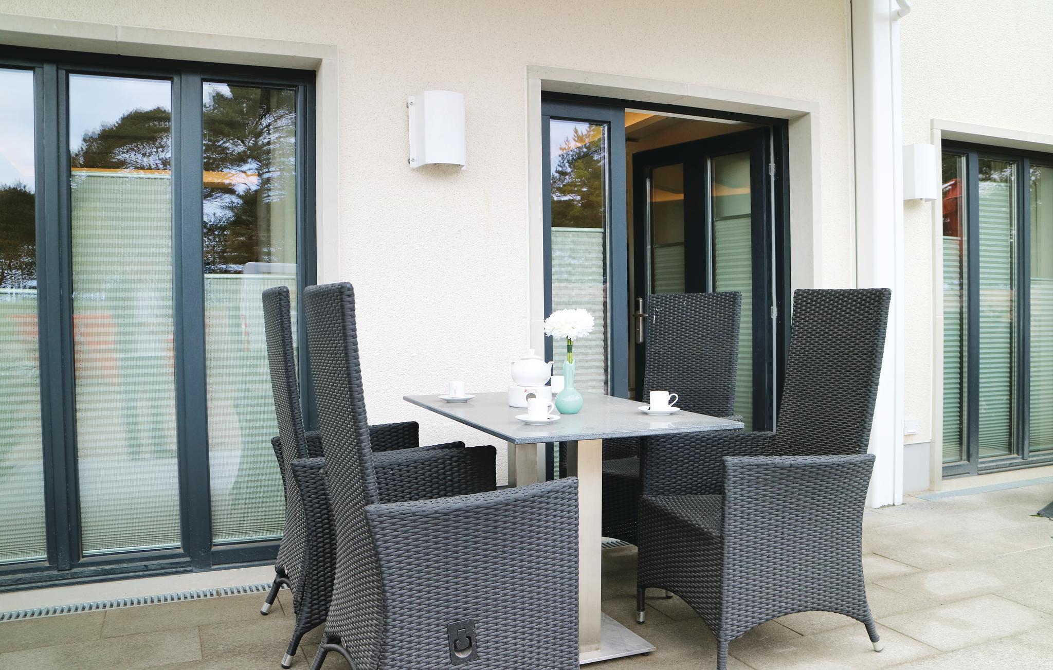 Treten Sie auf die Terrasse, genießen Sie die Sonne und entspannen Sie in bequemen Sonnenliegen.