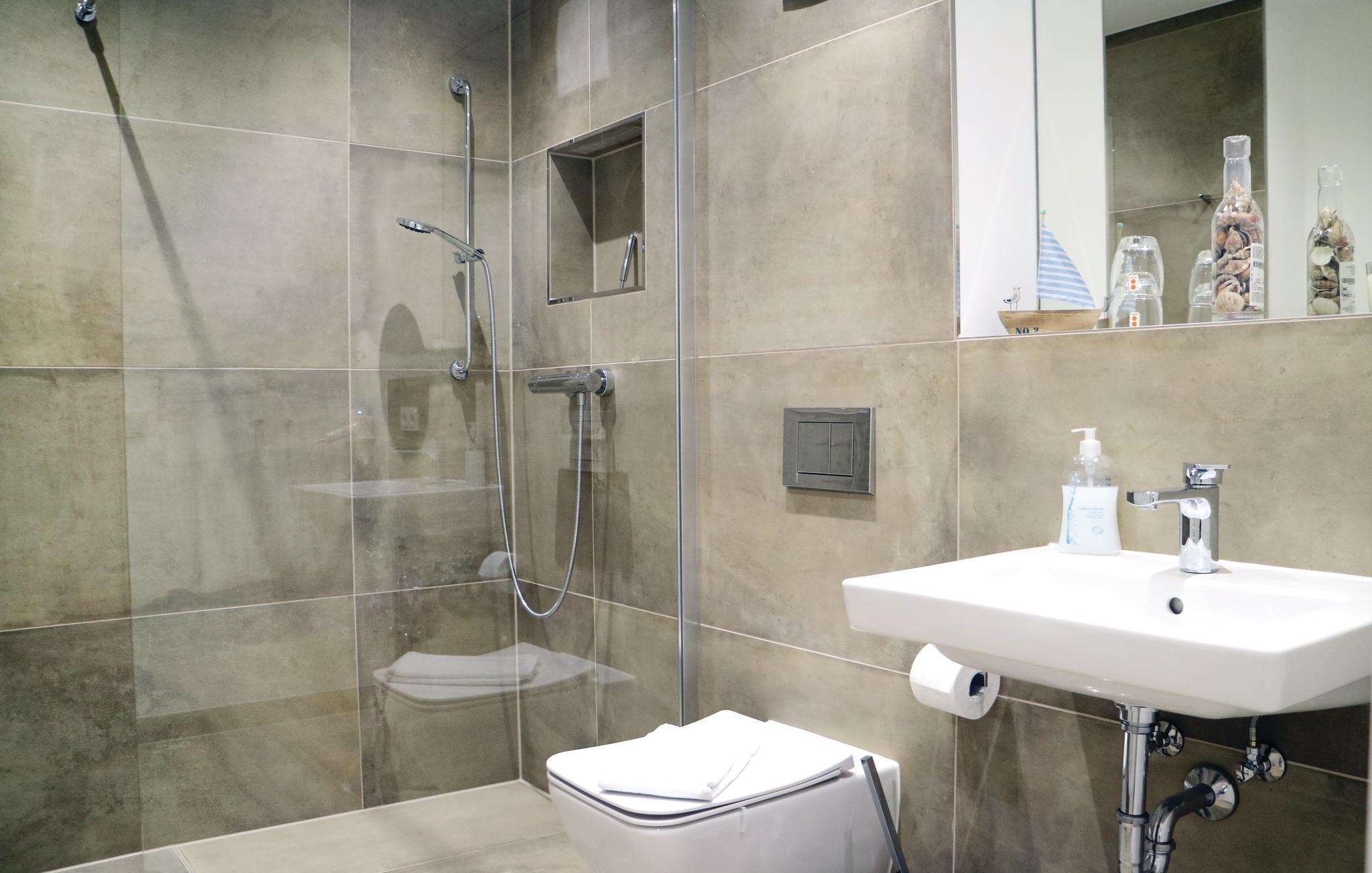 Die moderne Wohnung erwartet ihre Gäste nur wenige Schritte vom wunderschönen Strand entfernt. Genießen Sie dank hoher Decken im Wohnbereich ein besonders großzügiges Wohngefühl.
