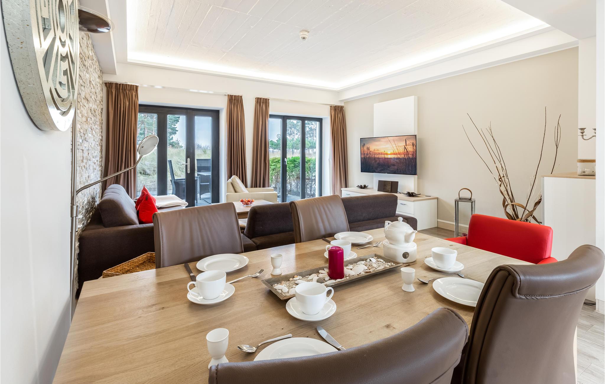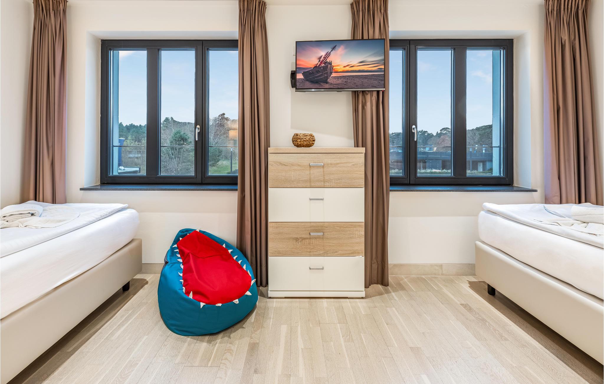 Moderne Ferienwohnung in Prora/Rügen mit Meerblick, Poolzugang und Wellnessbereich für einen erholsamen Urlaub am Strand.
