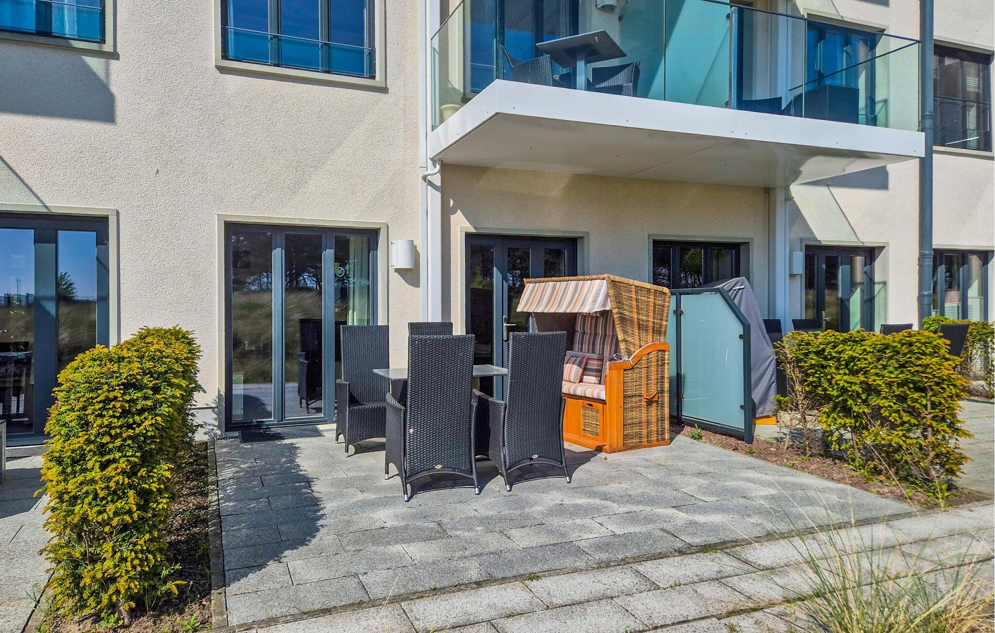 Genießen Sie die Sonne auf dem Balkon oder machen Sie es sich auf der Terrasse bequem und entspannen Sie im Strandkorb.