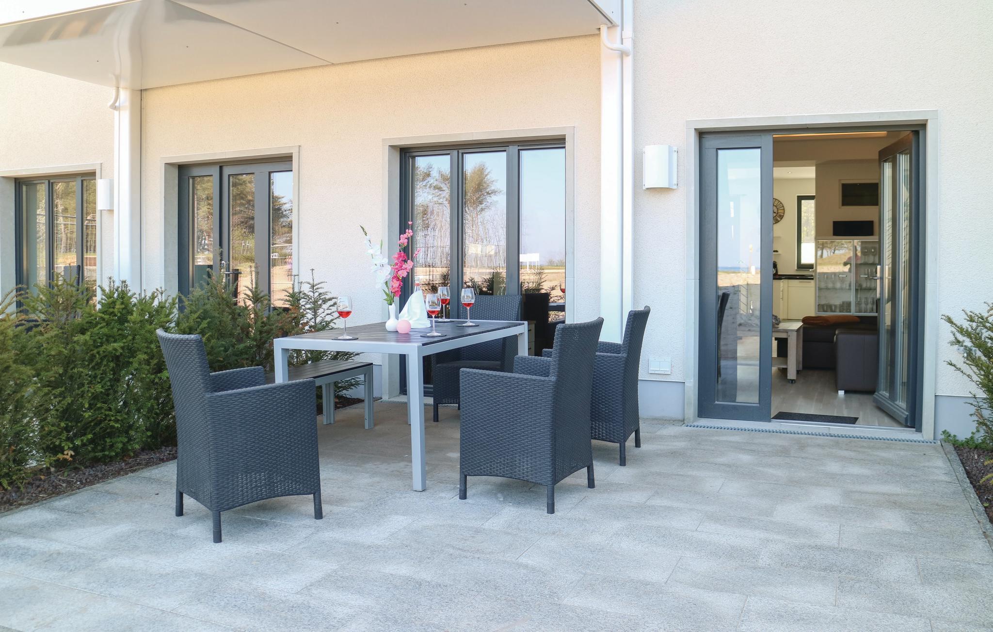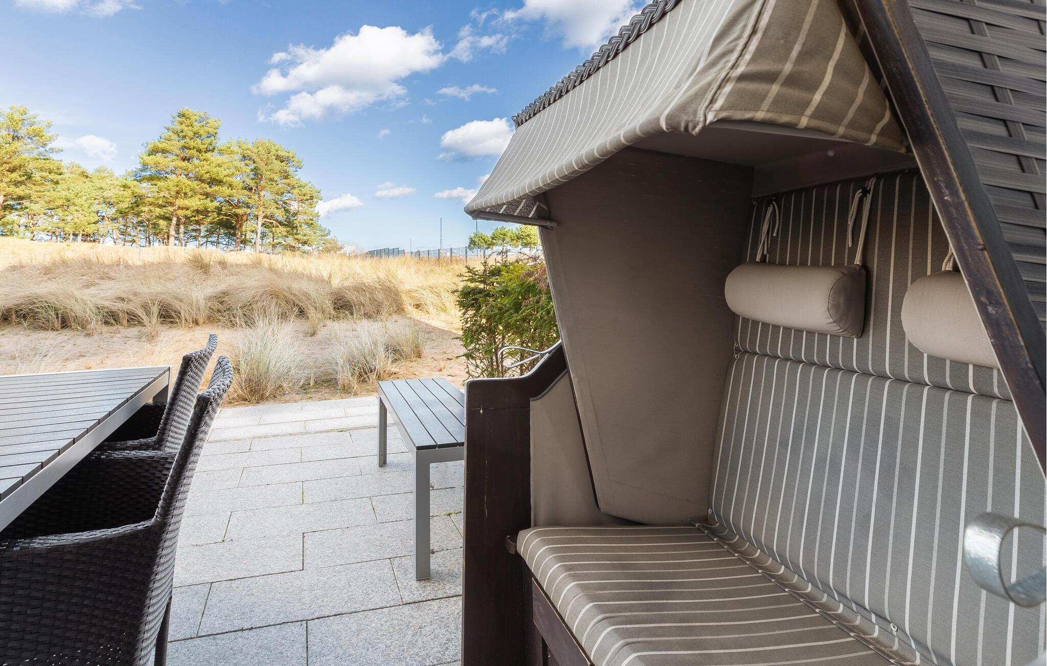 Moderne Ferienwohnung in Prora mit Meerblick, Pool und Wellnessbereich für erholsamen Urlaub am Strand.