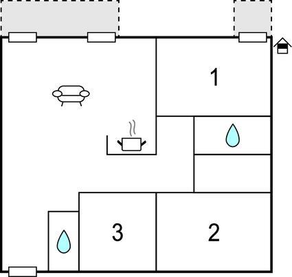 Badezimmer (nr. 1) - WC. Warmes und kaltes Wasser. Dusche