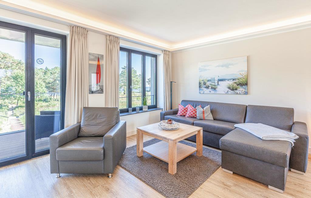 Exklusive Design-Ferienwohnung in Prora Solitaire, direkt an der Ostsee, mit Panoramablick und Wellnessbereich.