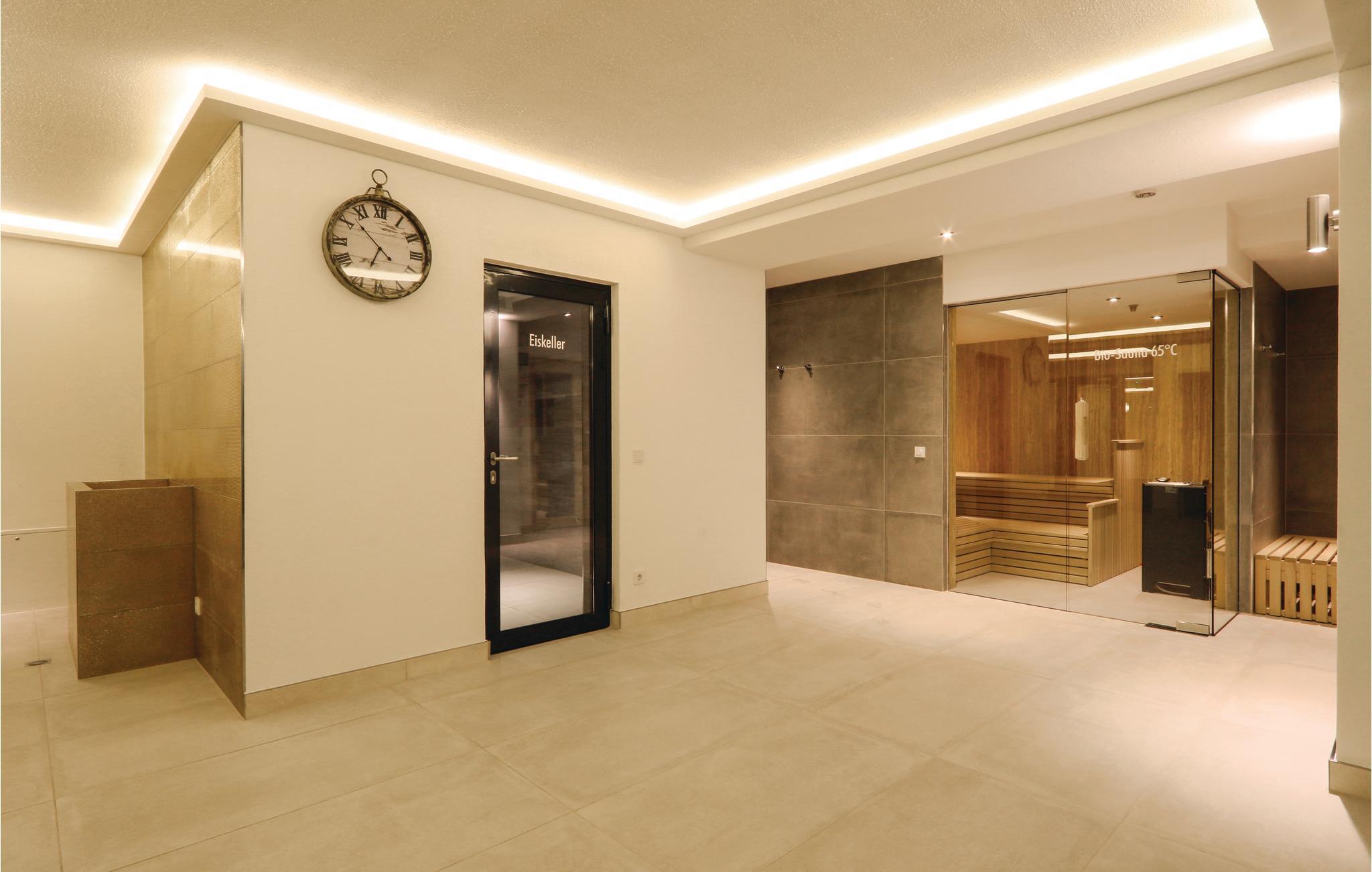 Allen Gästen von Prora Solitaire steht auch ein großzügiger Wellnessbereich zur Verfügung, den Sie von Ihrer Wohnung aus erreichen können, ohne das Haus verlassen zu müssen. Hier gibt es dann nicht nur einen großen Innenpool samt Kinderbecken, sondern auch verschiedene Saunen und Ruhebereiche, einen Fitnessbereich mit entsprechenden Geräten und die Möglichkeit für Massagen und andere Anwendungen, die an der Rezeption gebucht werden können.