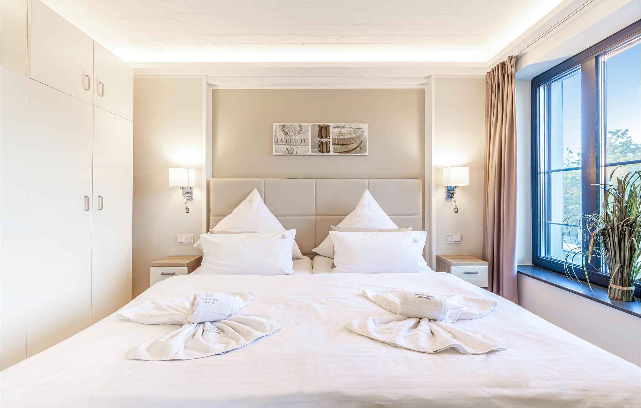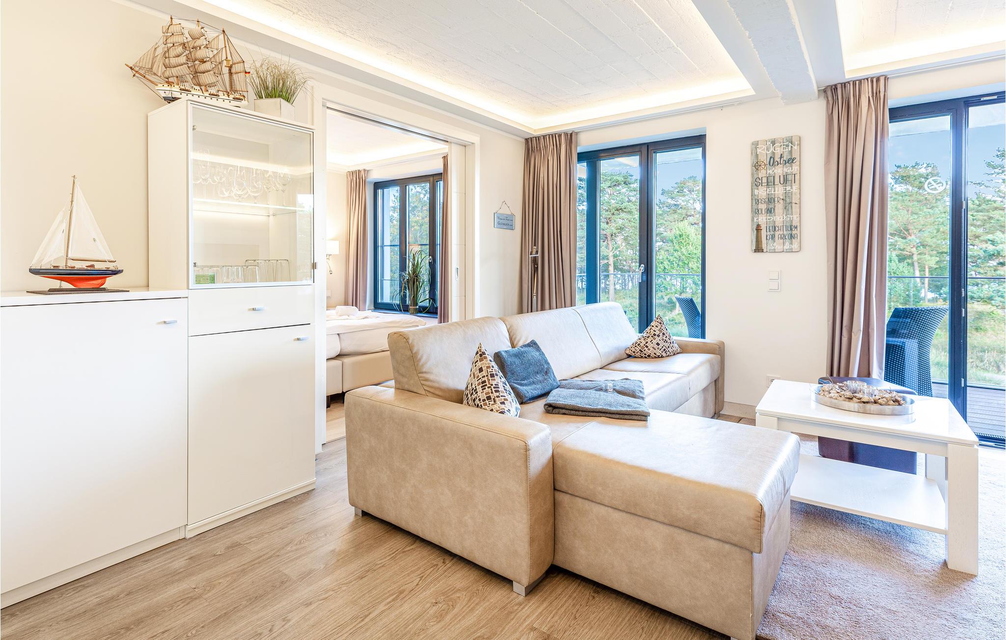 Komfortable Ferienwohnung in Prora mit Meerblick, Pool und Wellnessbereich für erholsame Urlaubstage.
