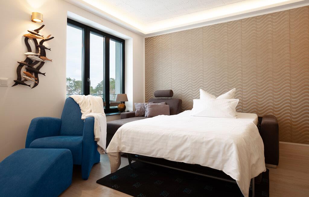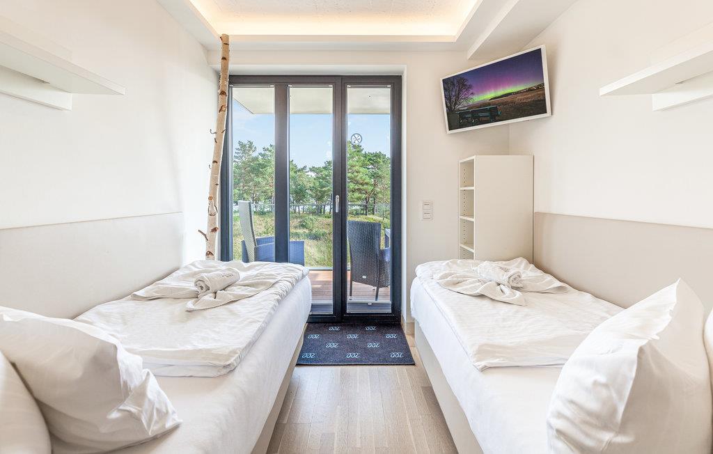 Moderne Ferienwohnung in Prora mit Meerblick, Pool, Wellness und direktem Strandzugang für erholsamen Urlaub.