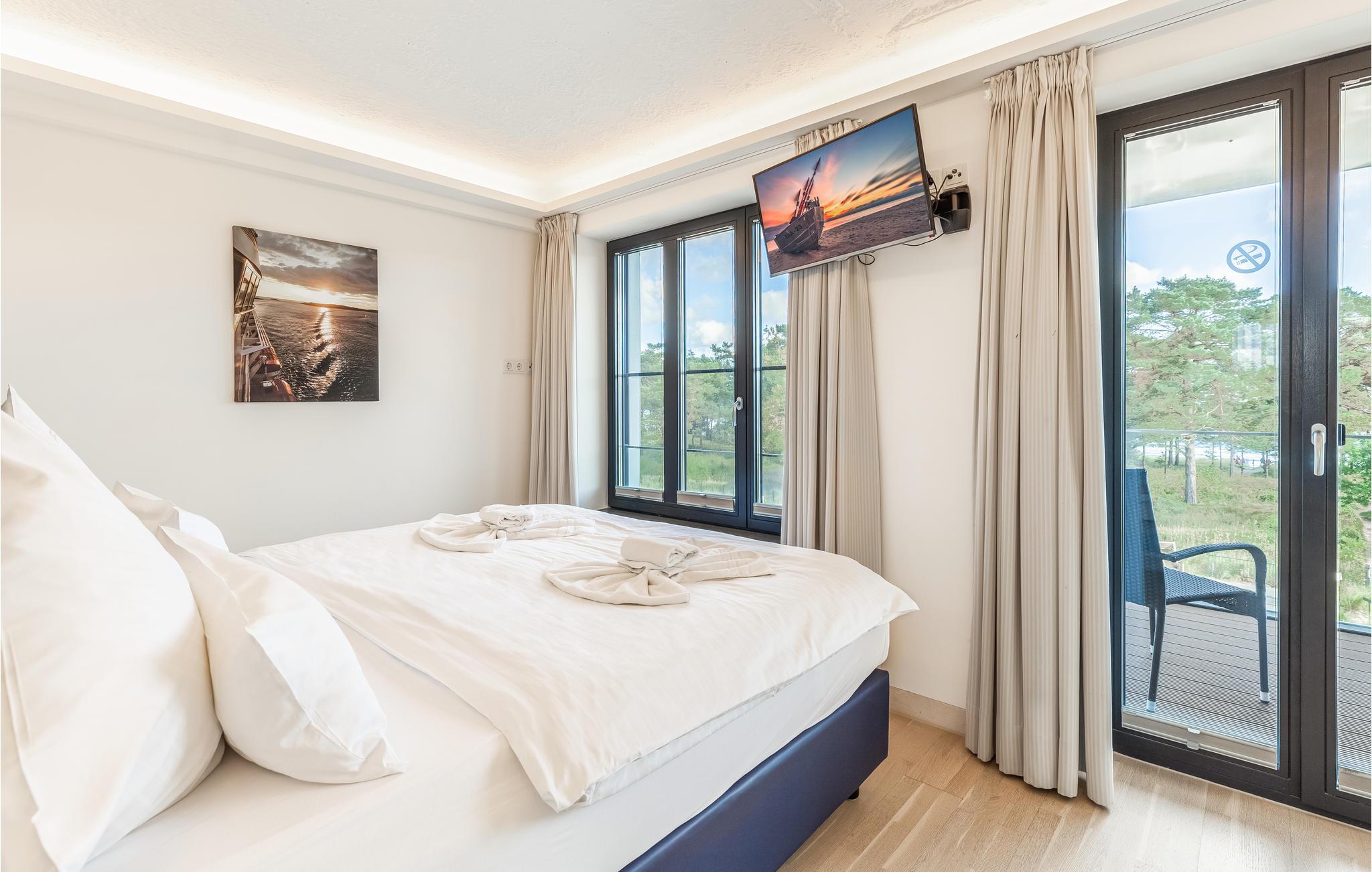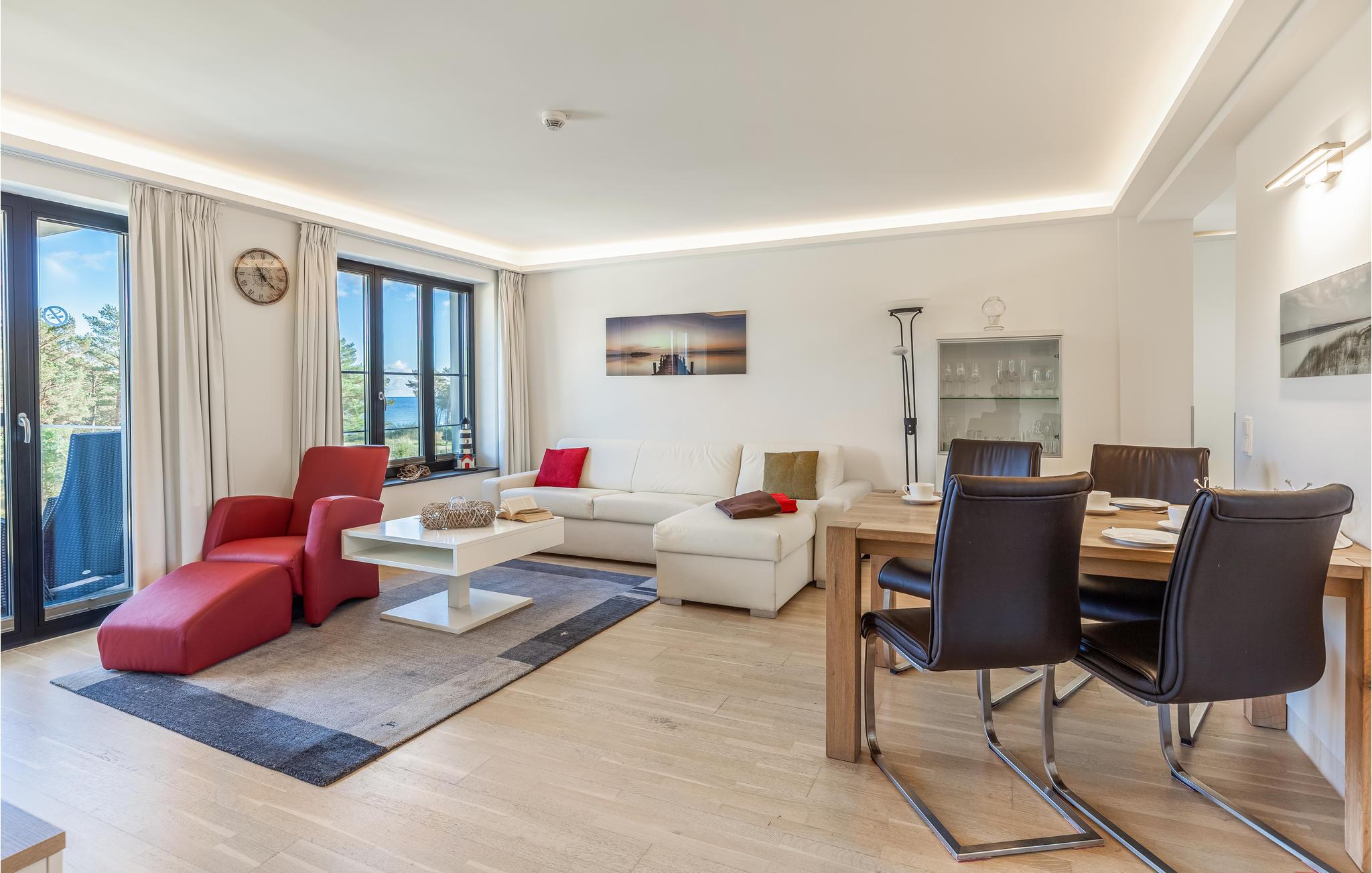 Komfortable Ferienwohnung in Prora mit Meerblick, Pool und Wellnessbereich für einen erholsamen Urlaub am Strand.