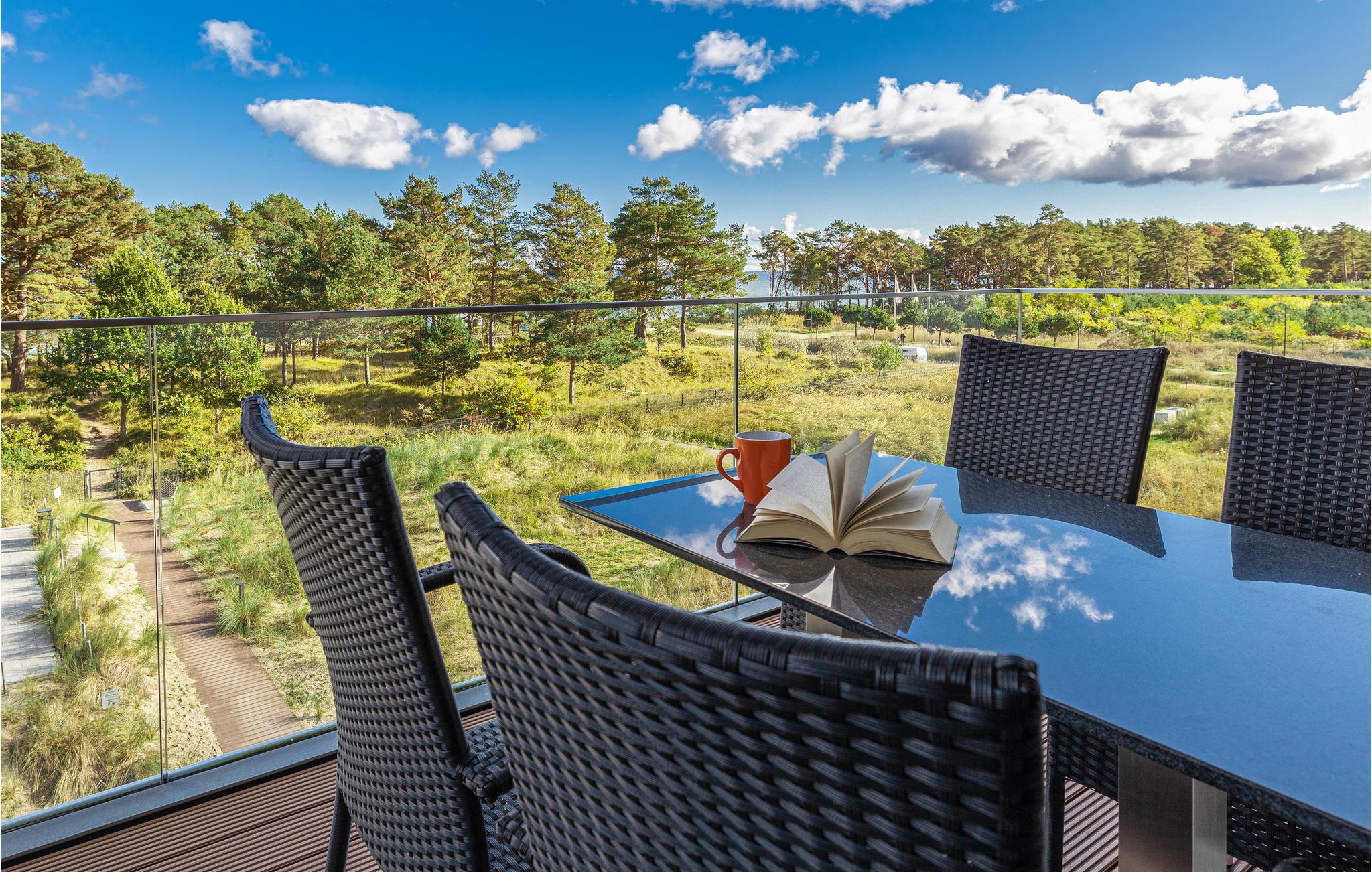 Vom großen Balkon aus können Sie einen schönen Blick auf die nur wenige Meter entfernte Ostsee mit ihrem fast karibisch anmutenden türkisfarbenen Wasser genießen