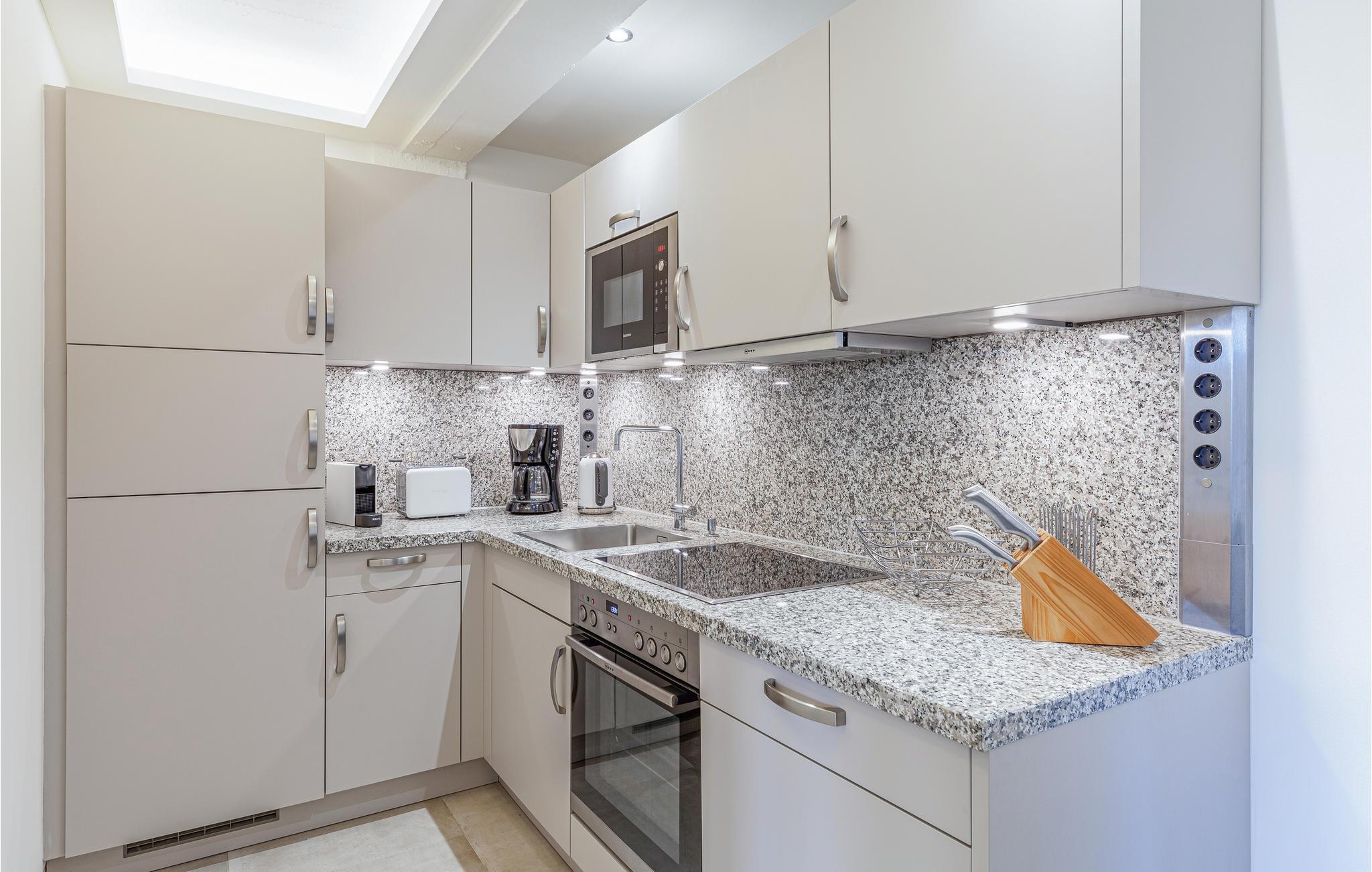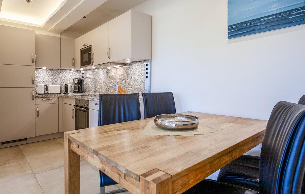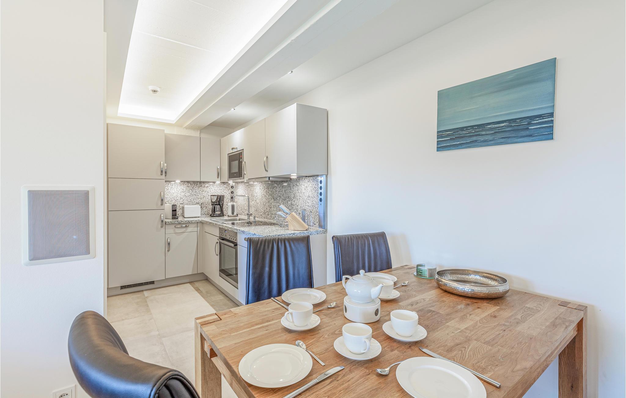 Die beiden Schlafzimmer haben jeweils einen eigenen Fernseher. Dank der hochwertigen Heimkinoanlage samt DVD-Player im Wohnbereich ist auch dann für gute Unterhaltung gesorgt, wenn das Wetter einmal nicht mitspielen sollte. In der modernen, voll ausgestatteten Küche können Sie sich selbst versorgen - oder aber eines der Cafés und Restaurants nutzen, die sich im Prora Solitaire befinden.
