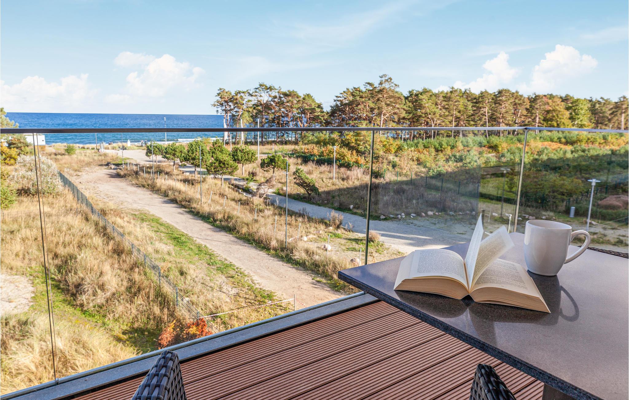 Moderne Ferienwohnung in Prora mit Meerblick, Poolzugang und Wellnessbereich direkt am Strand.