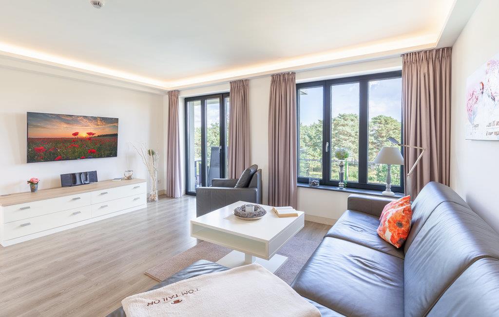 Exklusive Design-Ferienwohnung in Prora Solitaire mit Panoramablick auf die Ostsee und Wellnessbereich.