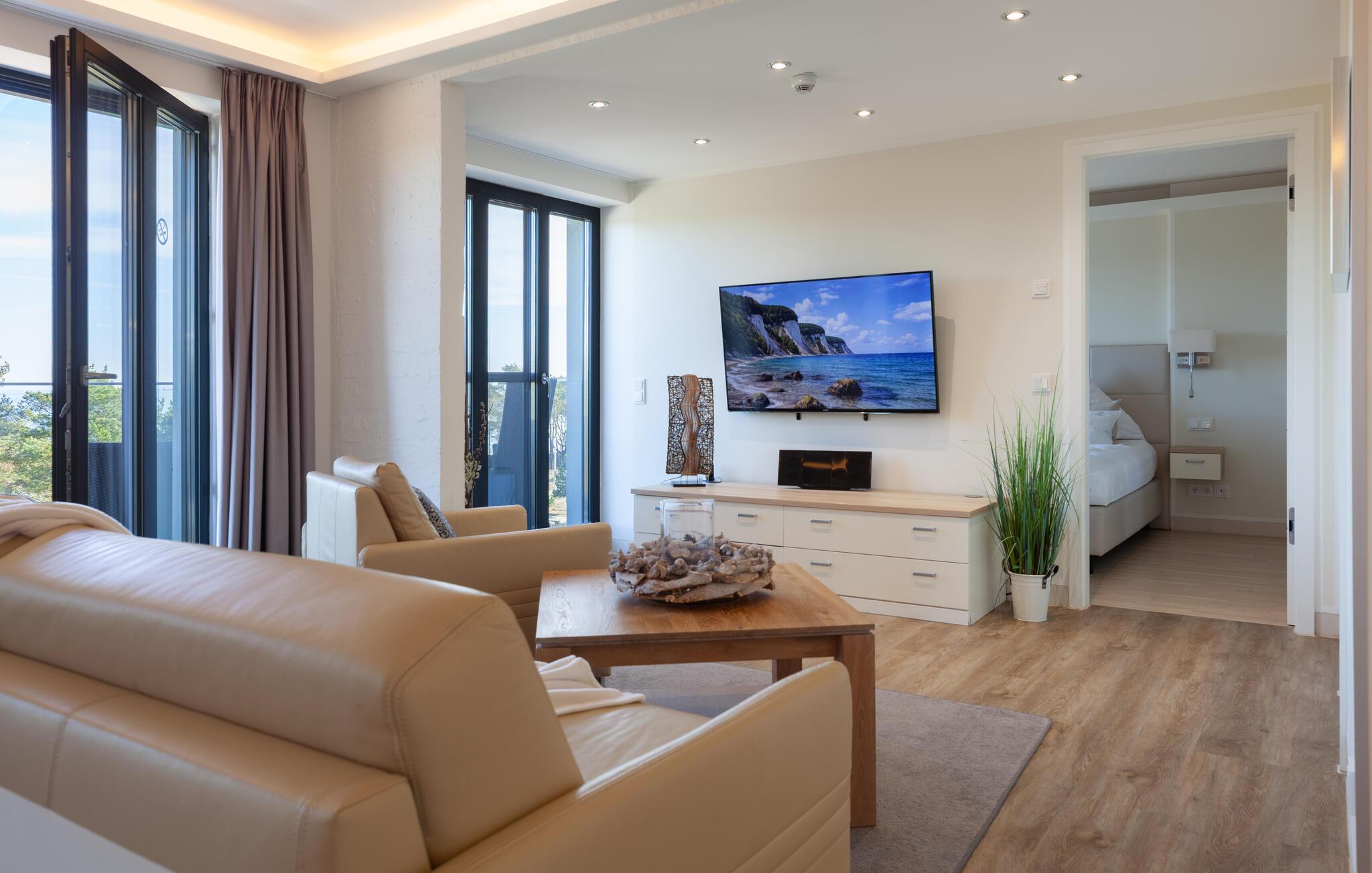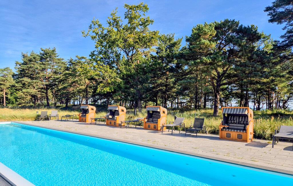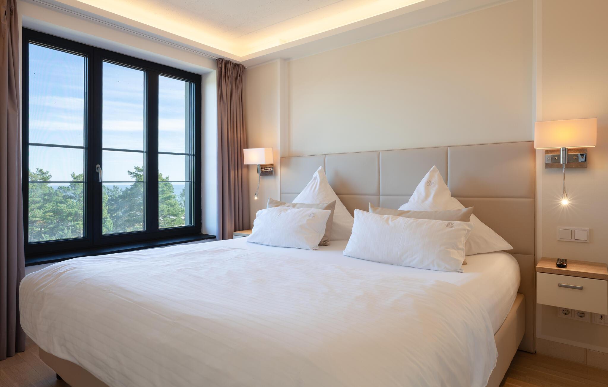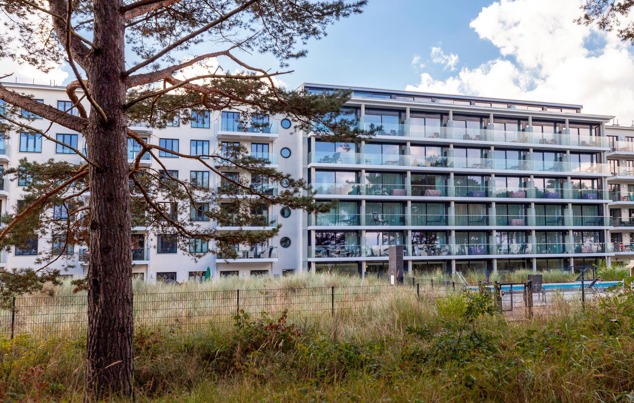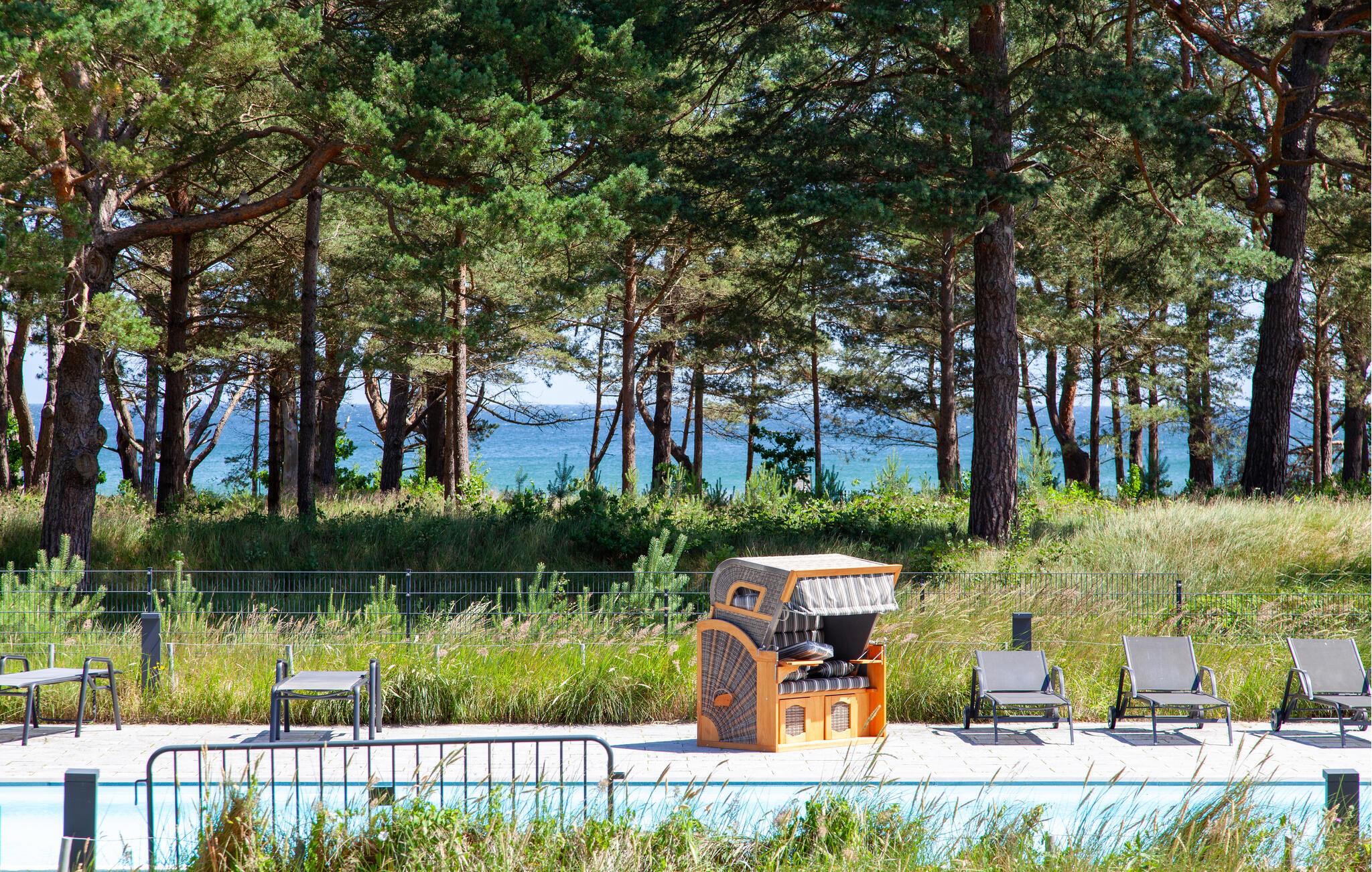 Komfortable Ferienwohnung in Prora mit Meerblick, Pool und Wellnessbereich für einen entspannten Urlaub am Strand.