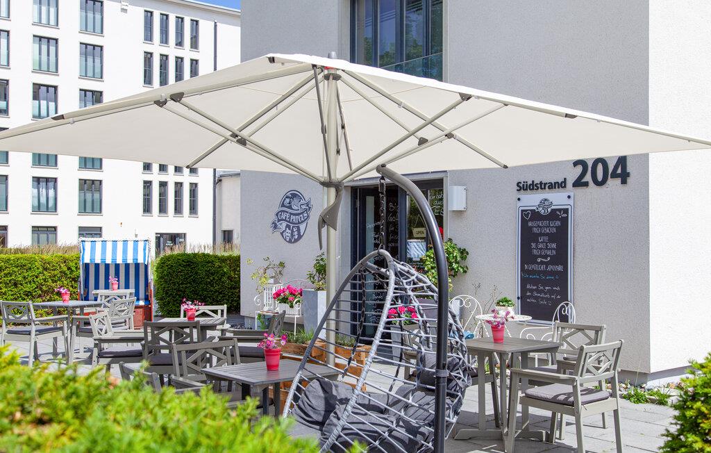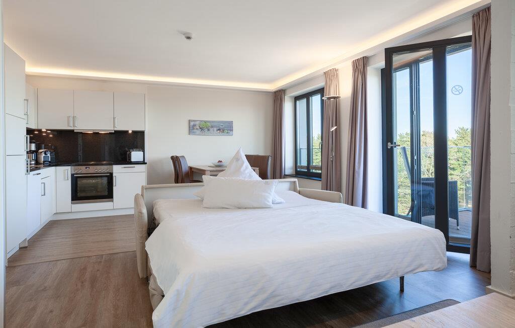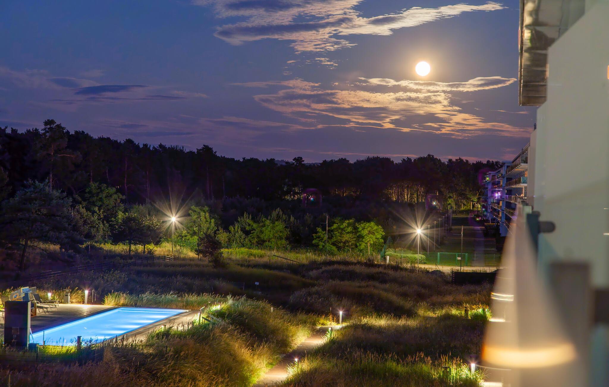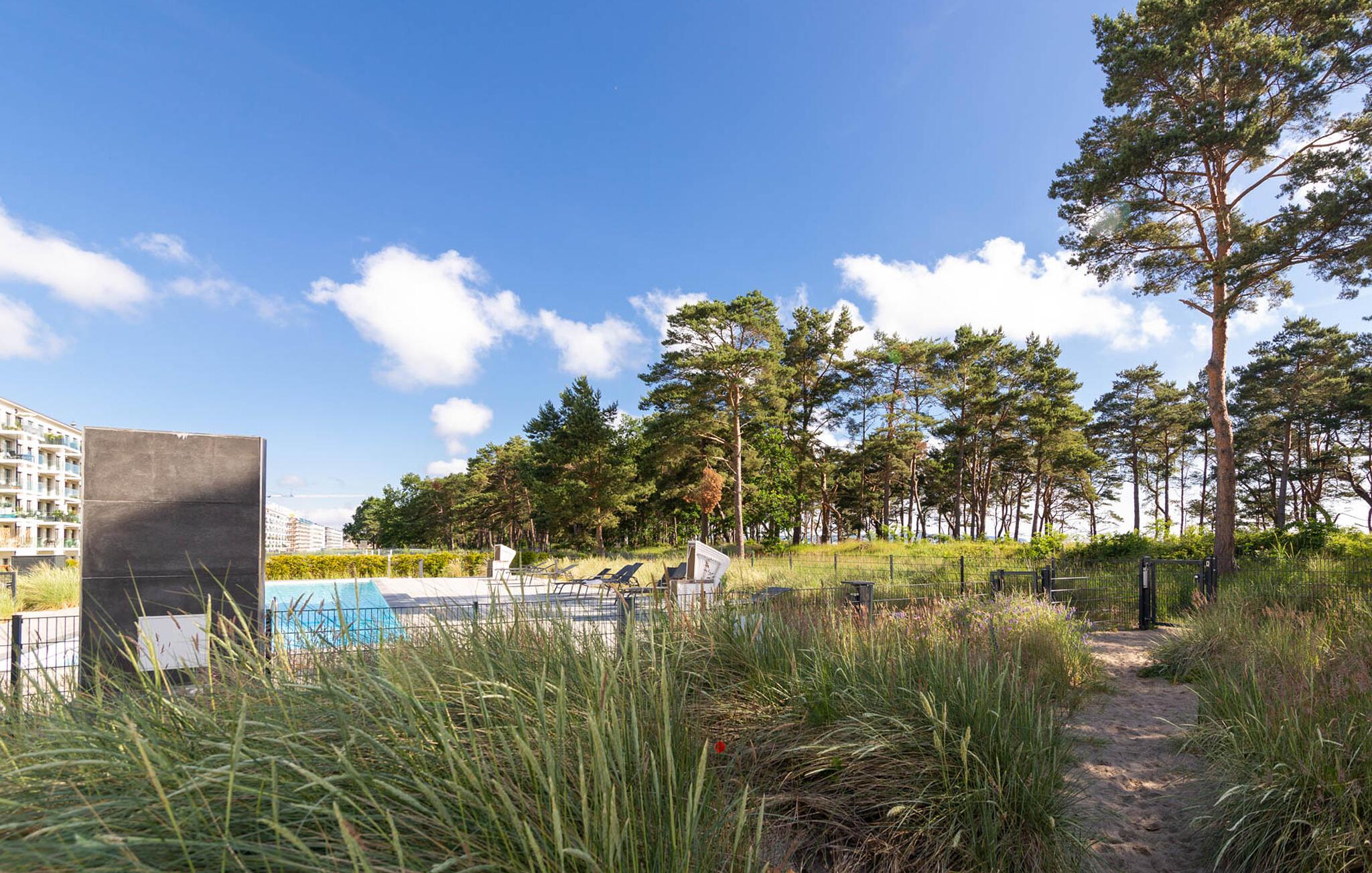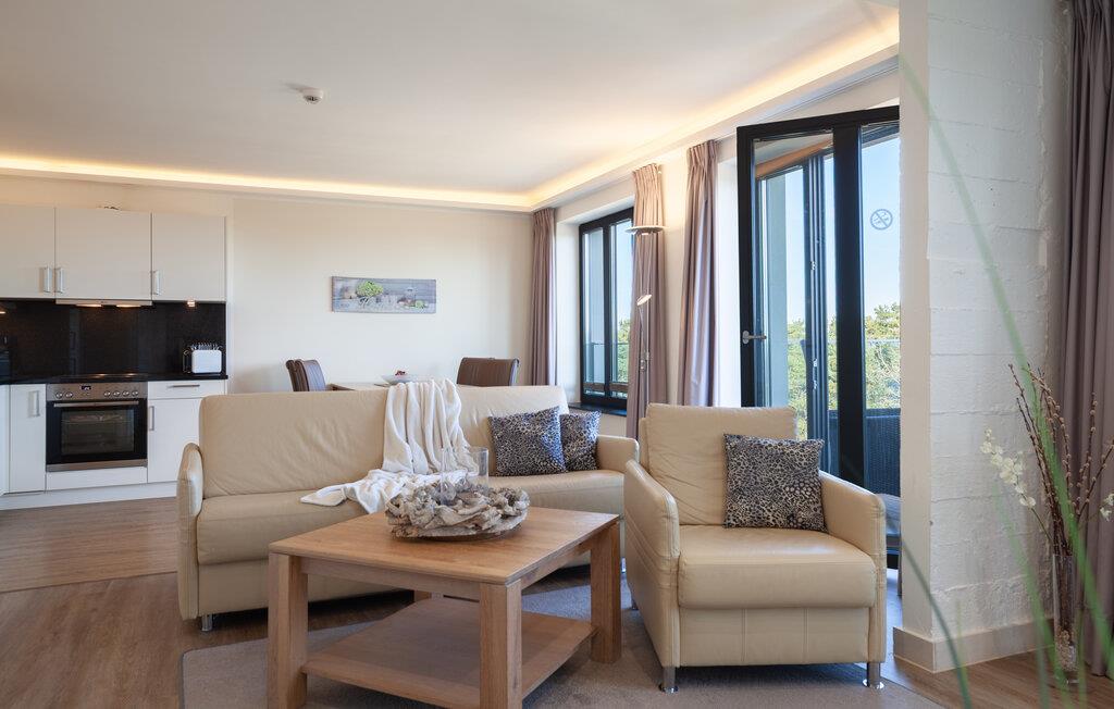 Komfortable Ferienwohnung in Prora mit Meerblick, Pool und Wellnessbereich für einen entspannten Urlaub am Strand.