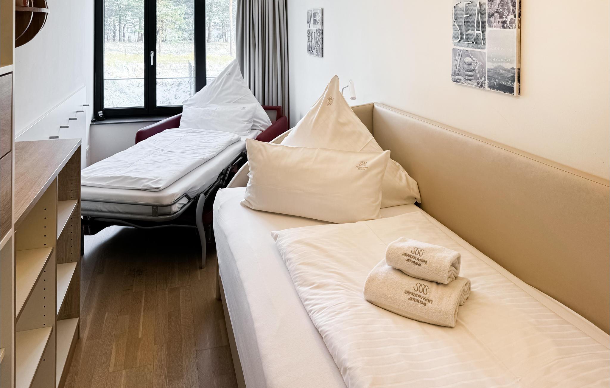 Allen Gästen von Prora Solitaire steht auch ein großzügiger Wellnessbereich zur Verfügung, den Sie von Ihrer Wohnung aus erreichen können, ohne das Haus verlassen zu müssen. Hier gibt es dann nicht nur einen großen Innenpool samt Kinderbecken, sondern auch verschiedene Saunen und Ruhebereiche, einen Fitnessbereich mit entsprechenden Geräten und die Möglichkeit für Massagen und andere Anwendungen, die an der Rezeption gebucht werden können.