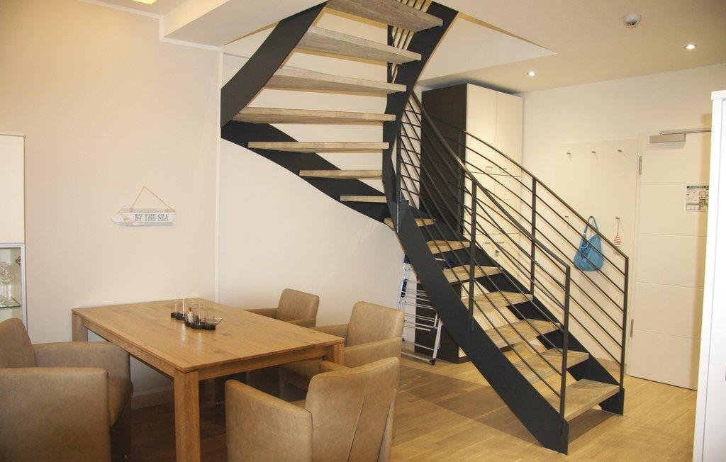 Auf zwei Etagen (EG+1.OG) erstreckt sich diese exklusive Maisonette-Wohnung. Unten erwartet Sie der großzügige, helle Wohnbereich mit integrierter Küche, die optimal ausgestattet ist. Kaffeeliebhaber freuen sich sicherlich über die bereitstehende Nespresso-Maschine (Kapseln bitte mitbringen). Ihre private Terrasse mit hochwertigen Gartenmöbeln lädt zu entspannten Stunden in der Sonne, Frühstück im Freien oder einem gemütlichen Grillabend ein. Vom Balkon im 1. Stock aus können Sie über den kleinen Kiefernwald bis hin zur Ostsee schauen. Das Master-Schlafzimmer sowe das zweite Schlafzimmer sind zur Meerseite hin ausgerichtet. Vom kleineren Schlafzimmer aus erreichen Sie den Balkon. Dank des komfortablen Schlafsofas (Breite: 1,50 m) können Sie es auch als zweiten Wohnraum nutzen.