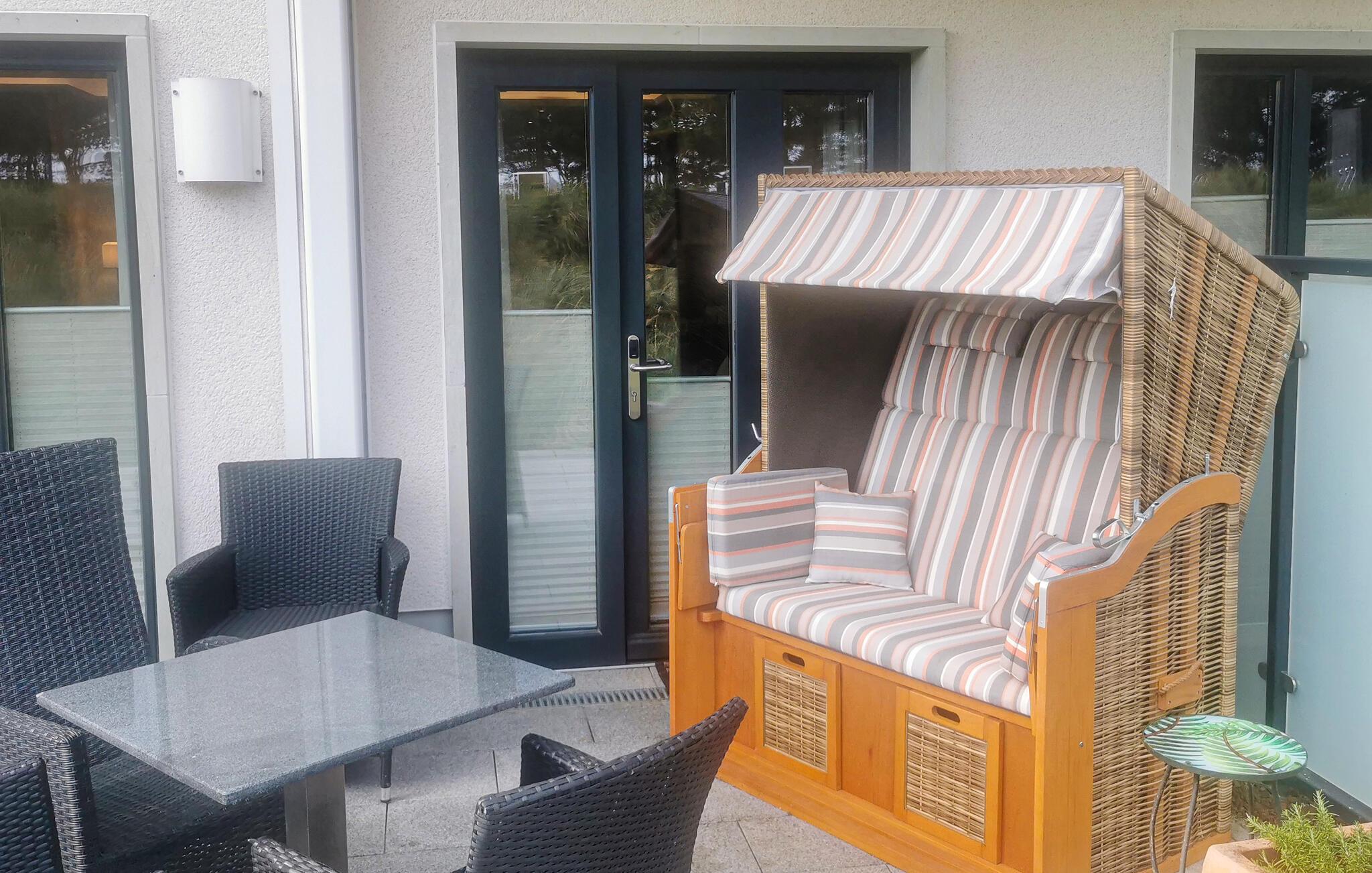 Entspannen Sie im privaten Strandkorb auf der großen, teilweise überdachten Terrasse oder veranstalten Sie einen Grillabend unter freiem Himmel. Von der Terrasse aus erreichen Sie in wenigen Schritten den Wellnessbereich und den beheizten Außenpool der Anlage. Später können Sie durch die parkähnliche Gartenlandschaft schlendern und in einem der Außenpools, die von Ostern bis Oktober geöffnet sind, ein paar Züge schwimmen. Spielen Sie außerdem Basketball, Boule, Outdoorschach oder Tischtennis.