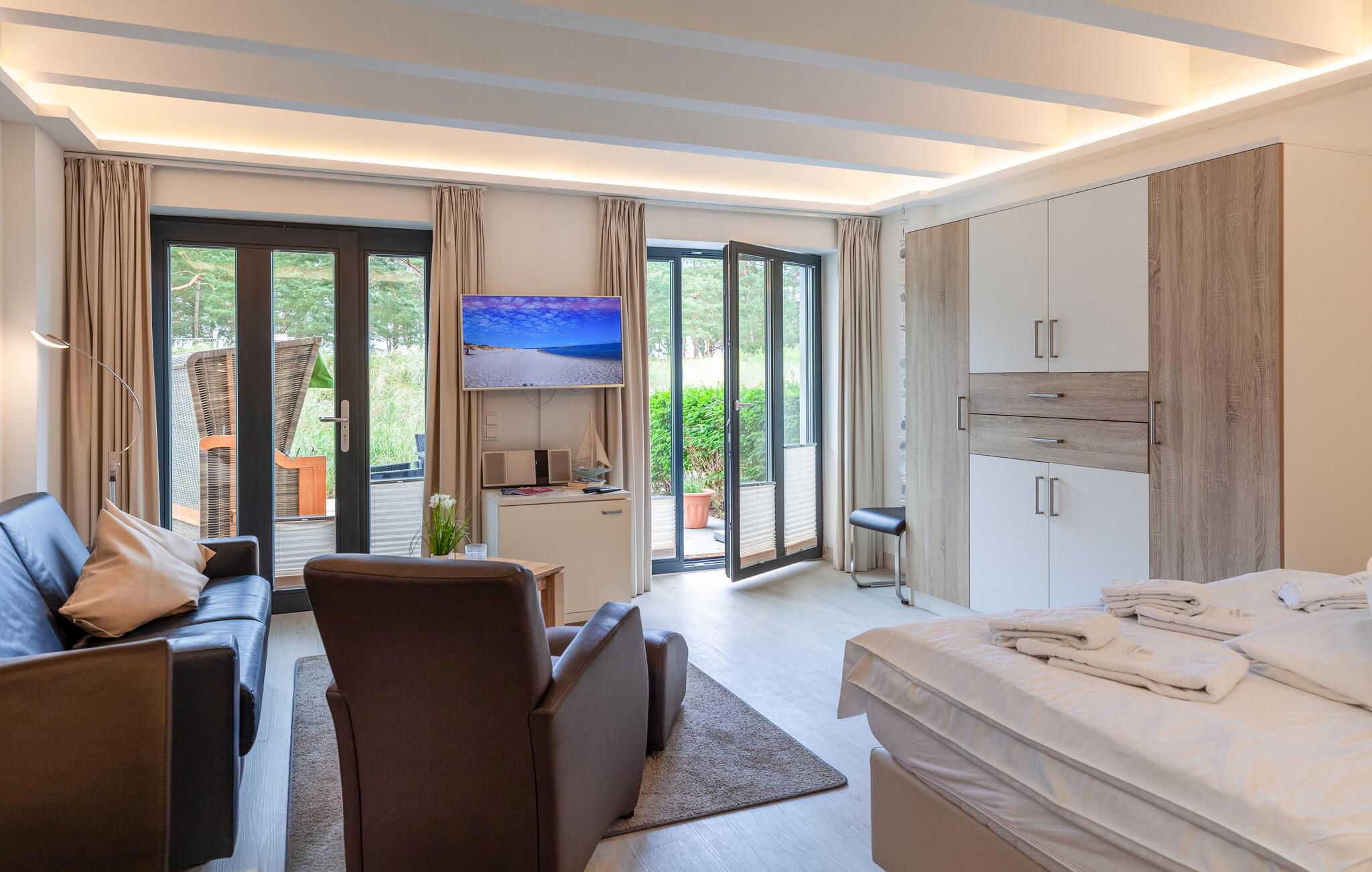 Genießen Sie eine moderne Ferienwohnung mit Meerblick, Pool und Wellness nur wenige Schritte vom Strand in Prora auf Rügen.