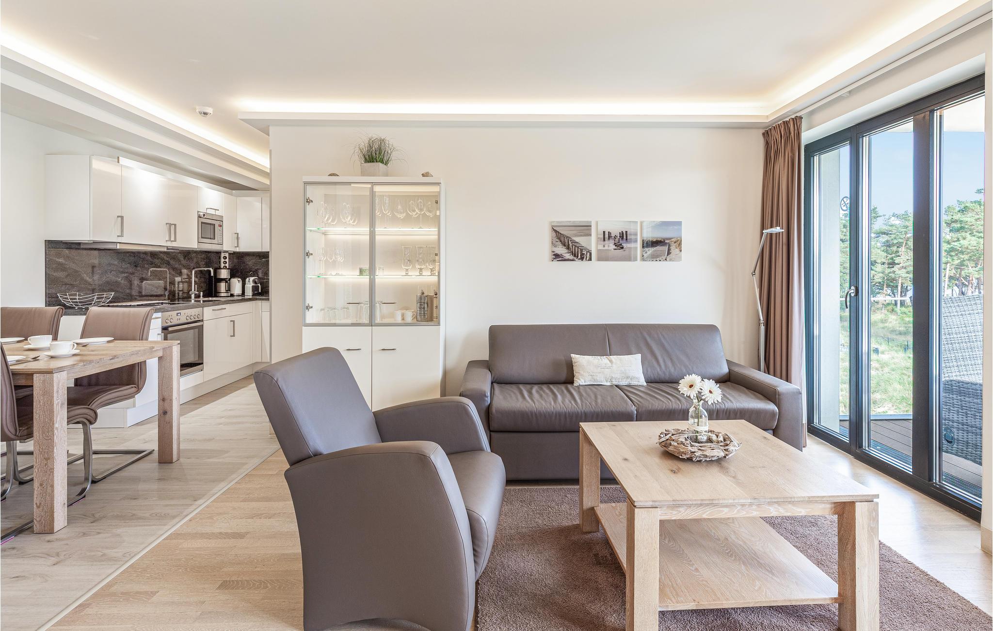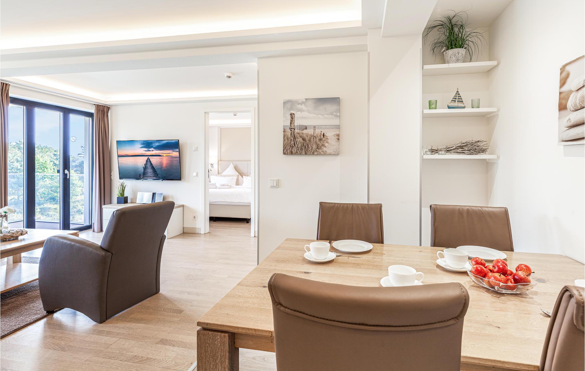 Moderne Ferienwohnung in Prora/Rügen mit Meerblick, Pool, Wellness und Strandzugang für einen erholsamen Urlaub.