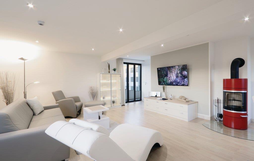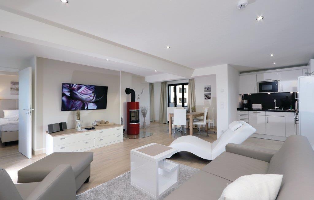 Die Ferienwohnung verspricht eine hochwertige Genuss- und Wohlfühlatmosphäre. Exklusive Möbel wurden perfekt aufeinander abgestimmt und stehen für ein Lebensgefühl, das Harmonie und Eleganz vereint. Jedes Möbelstück und Wohnaccessoire ist sorgfältig ausgewählt, nichts wurde dem Zufall überlassen. Der Kaminofen zaubert eine besonders gemütliche Atmosphäre in der Wohnung. Durch seine raffinierte Bauweise können Sie sowohl vom Wohnbereich als auch vom Schlafzimmer aus die besondere Atmosphäre genießen, die das Flammenspiel in die Räume zaubert.