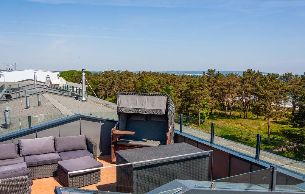 Exklusive Design-Ferienwohnung mit Panoramablick und privater Dachterrasse direkt an der Ostsee in Prora.