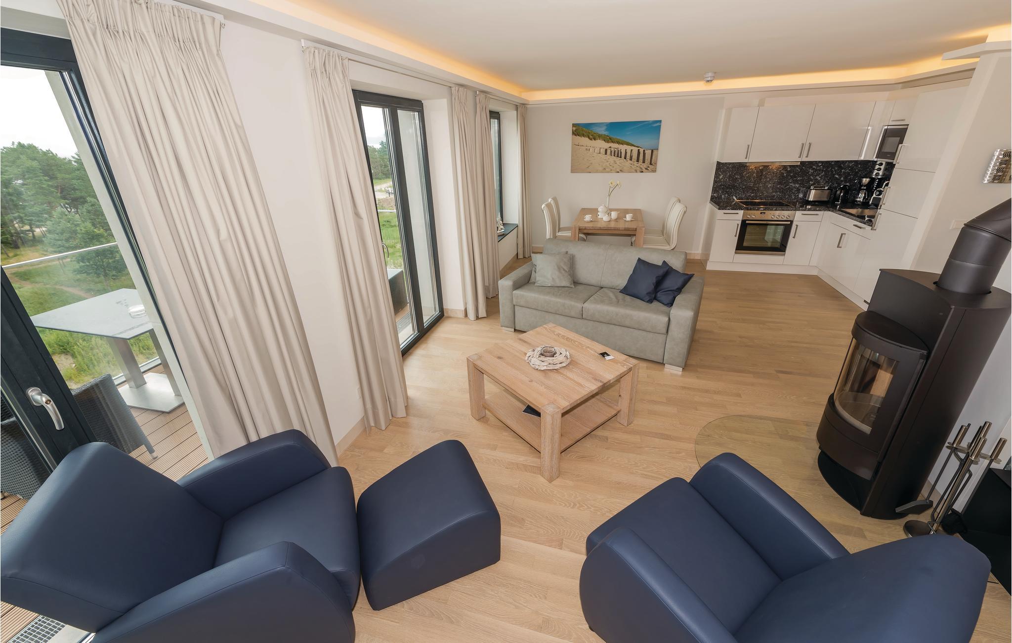 Komfortable Ferienwohnung in Prora mit Meerblick, Pool, Wellness und direktem Strandzugang.