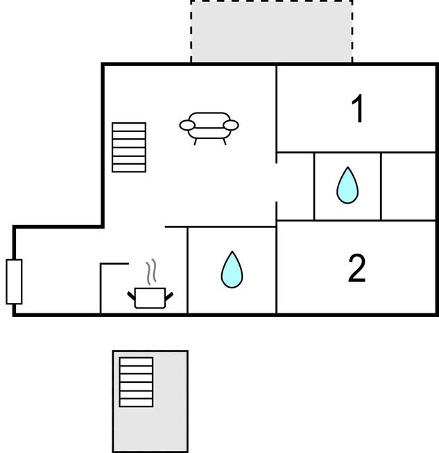 - WC mit warmem und kaltem Wasser, Dusche und Badewanne