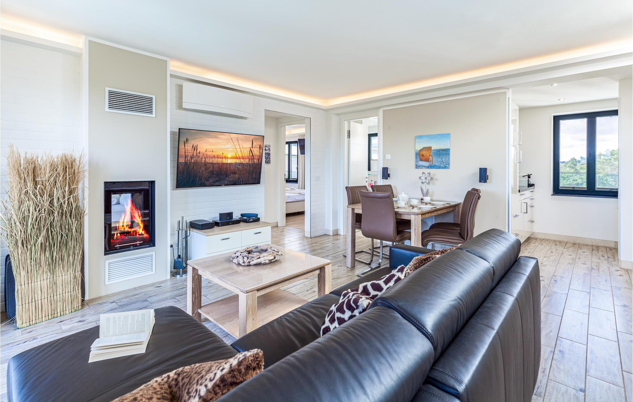 Die moderne Penthouse-Wohnung erwartet ihre Gäste nur wenige Schritte vom wunderschönen Strand entfernt. Genießen Sie im lichtdurchfluteten Wohnbereich mit Panoramafenstern einen atemberaubenden Blick über die Ostsee. Machen Sie es sich nach einem erlebnisreichen Tag am Kaminofen bequem, sowohl vom Wohnbereich als auch vom Schlafzimmer aus die besondere Atmosphäre genießen, die das Flammenspiel in die Räume zaubert.