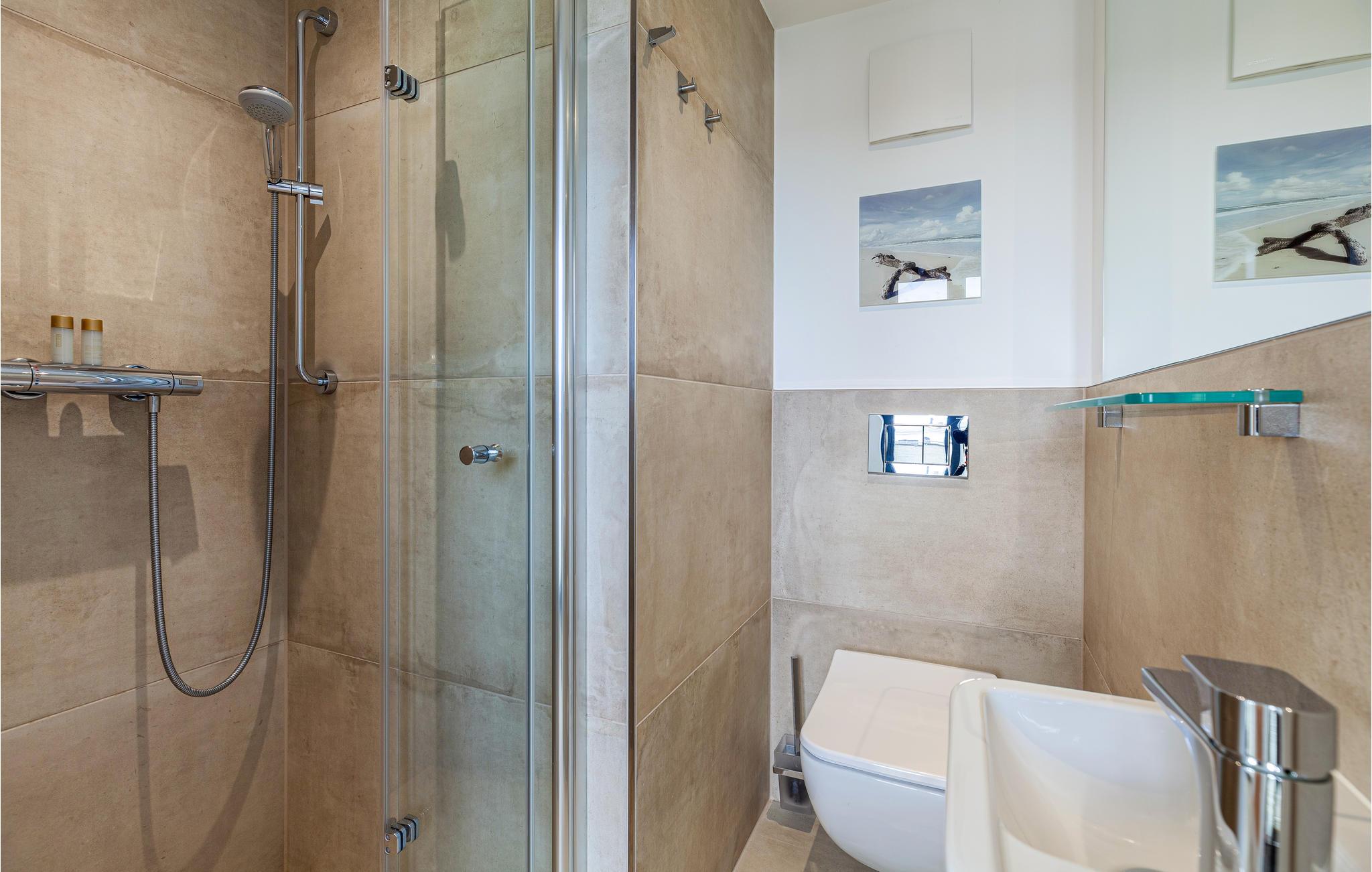 - WC mit warmem und kaltem Wasser, Dusche