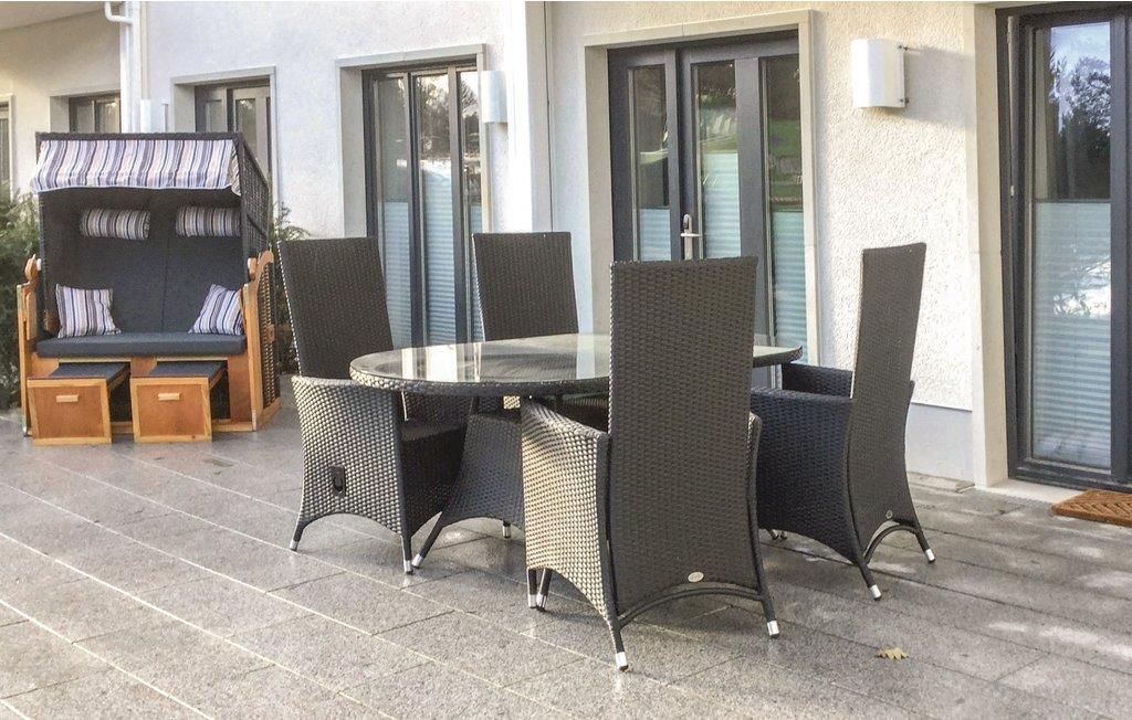 Auf der großen, teilweise überdachten Terrasse können Sie herrlich in Ihrem privaten Strandkorb entspannen oder einen Grillabend im Kreise Ihrer Lieben veranstalten. Ein hochwertiger Weber-Elektrogrill gehört zur Ausstattung der Wohnung.