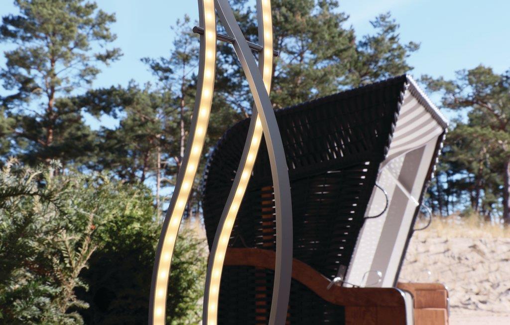 Auf der großen, teilweise überdachten Terrasse können Sie herrlich in Ihrem privaten Strandkorb entspannen oder einen Grillabend im Kreise Ihrer Lieben veranstalten. Ein hochwertiger Weber-Elektrogrill gehört zur Ausstattung der Wohnung. Von der Terrasse aus erreichen Sie in wenigen Schritten den Wellnessbereich und den beheizten Außenpool der Anlage, und auch der feinsandige Ostseestrand ist nur einen kurzen Spaziergang von ca. 130 m entfernt.