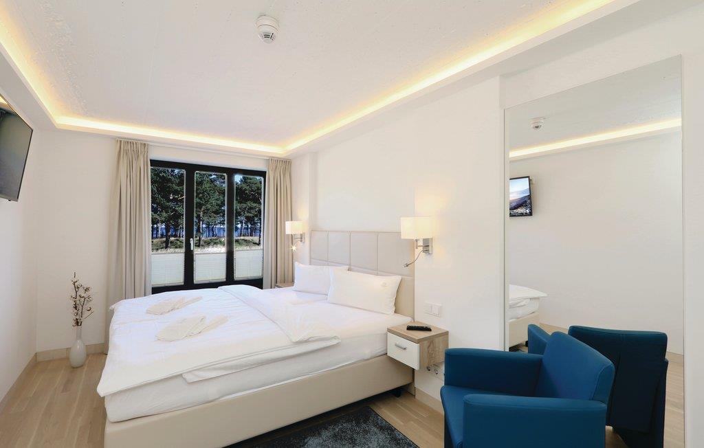 Auf fast 80 m² ist hier Platz für die ganze Familie. Mit zwei Schlafzimmern und zwei Bädern ist es ebenso perfekt geeignet für befreundete Paare geeignet, die gemeinsam verreisen. Vom großen Balkon aus können Sie einen schönen Blick auf die nur wenige Meter entfernte Ostsee mit ihrem fast karibisch anmutenden türkisfarbenen Wasser genießen. Vom Master-Schlafzimmer aus haben Sie direkten Zugang zum Balkon, so dass Sie gleich morgens als erstes die Panoramaaussicht genießen können.