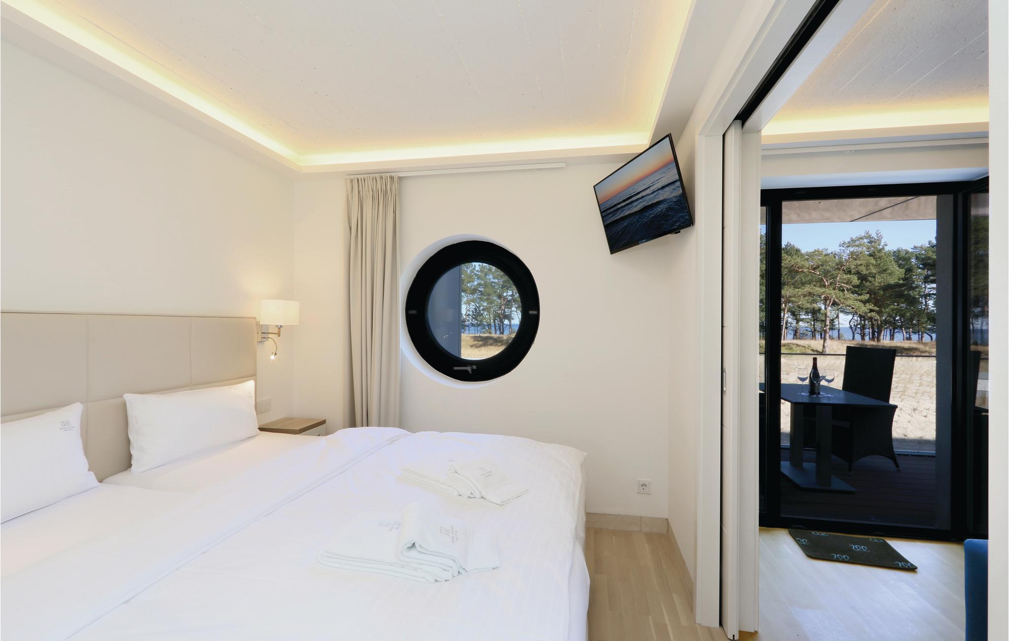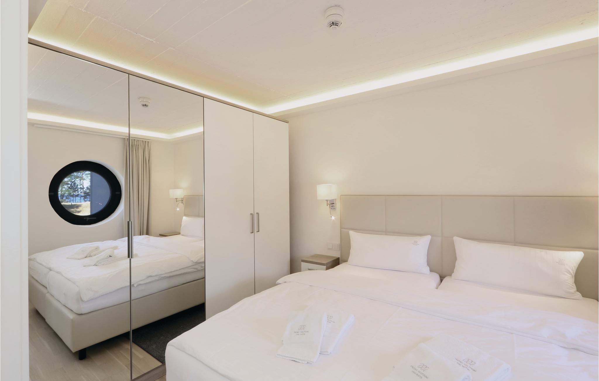 Moderne Ferienwohnung in Prora mit Meerblick, Pool, Wellness und Strandzugang für erholsamen Urlaub.