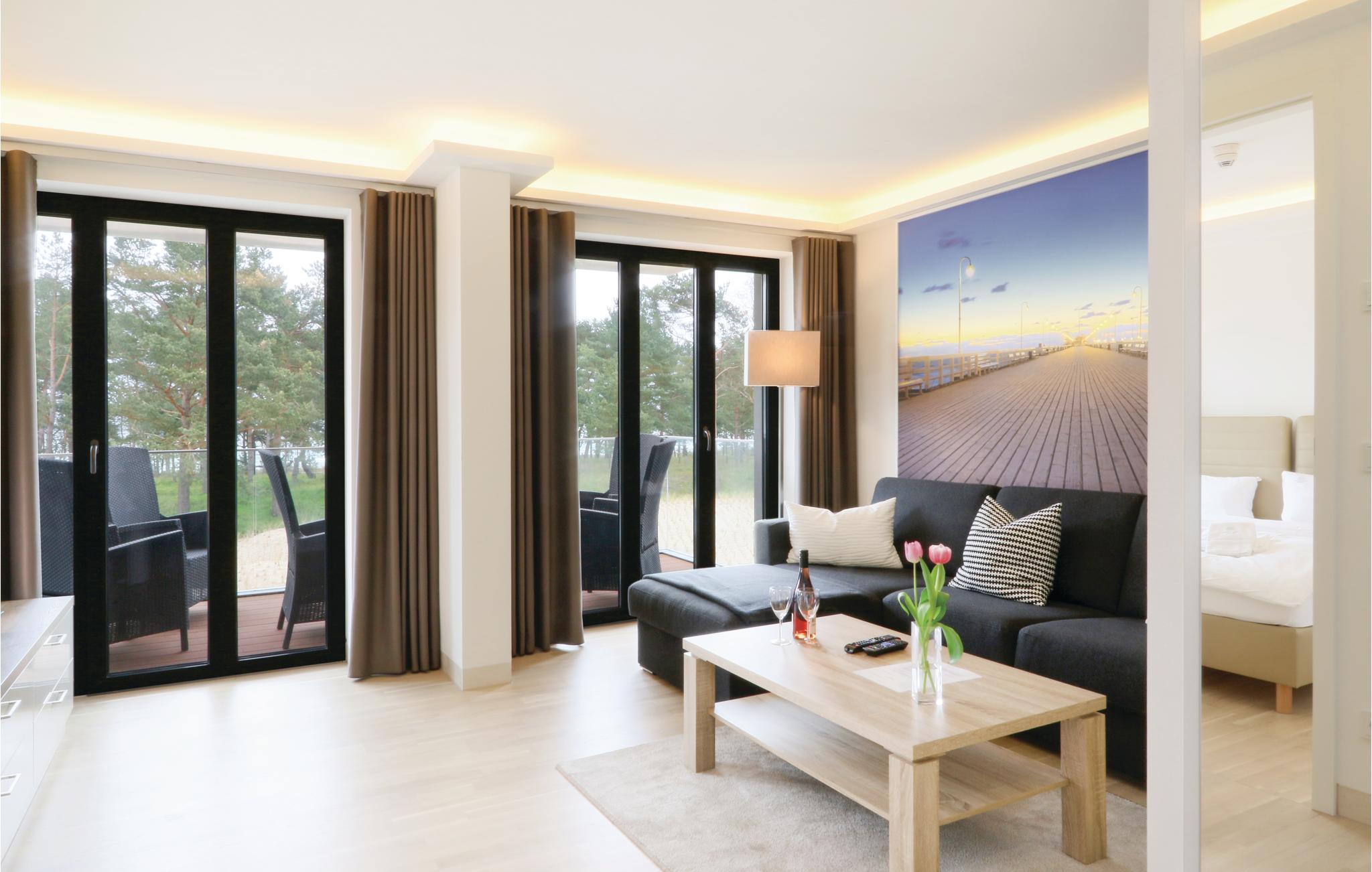 Moderne Ferienwohnung in Prora mit Meerblick, Pool, Wellness und Strandnähe für entspannte Urlaubstage.