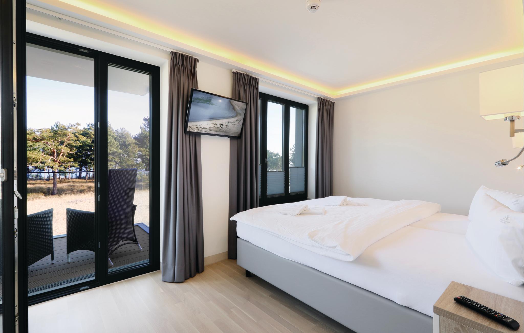 Moderne Ferienwohnung in Prora mit Meerblick, Pool, Wellness und direktem Strandzugang.