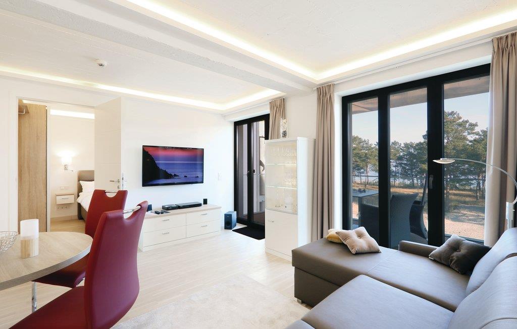 Die Ferienwohnung verspricht eine hochwertige Genuss- und Wohlfühlatmosphäre. Exklusive Möbel wurden perfekt aufeinander abgestimmt und stehen für ein Lebensgefühl, das Harmonie und Eleganz vereint. Jedes Möbelstück und Wohnaccessoire ist sorgfältig ausgewählt - nichts wurde dem Zufall überlassen. Insbesondere auf ein gesundes Raumklima und allergikerfreundliche Materialien wurde geachtet. Auf über 40m² finden Sie hier alle Annehmlichkeiten. Der großzügige, offene Wohnbereich ist dank der großen Fensterfronten lichtdurchflutet, der Blick öffnet sich und kann über den kleinen Kiefernwald bis hin zum türkisfarbenen Wasser der Ostsee schweifen. Die top ausgestattete Küche lässt ebenfalls keine Wünsche offen und lädt zu Kochabenden im Kreise Ihrer Lieben ein.