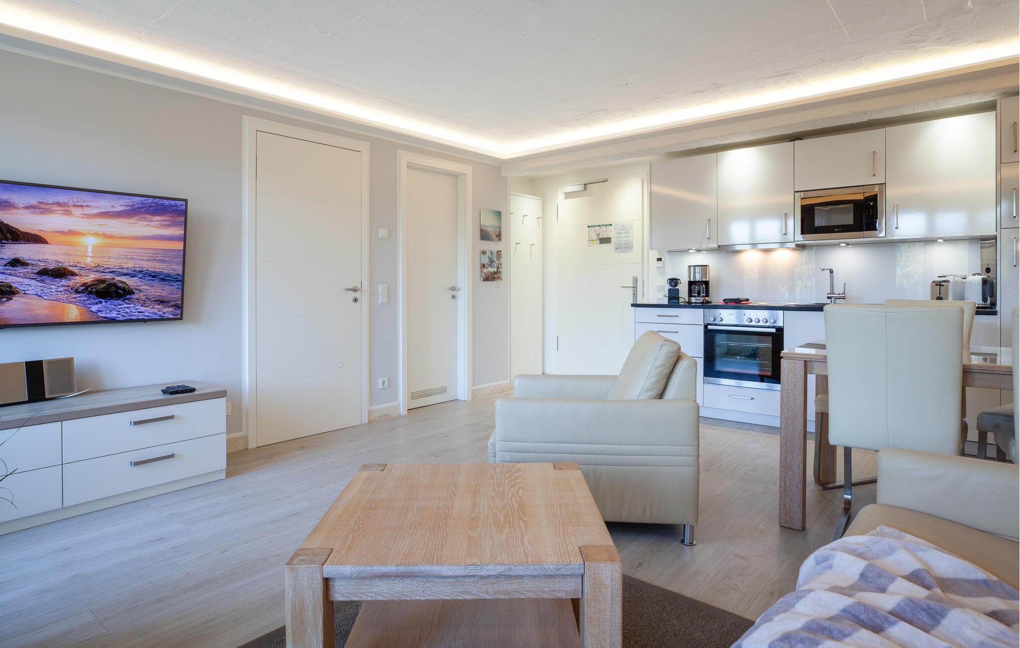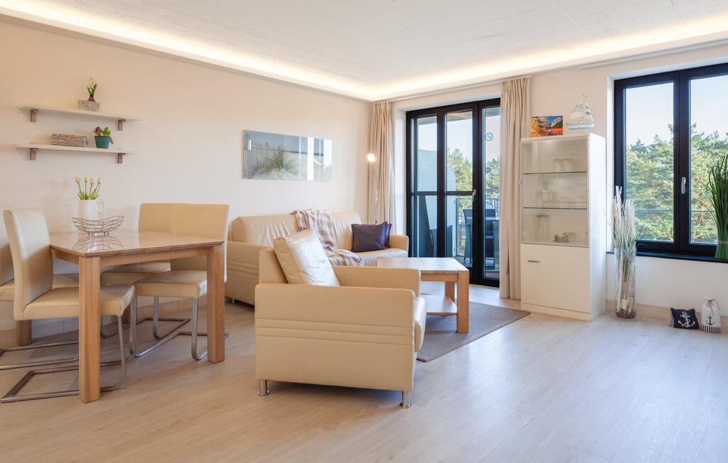 Die moderne Wohnung erwartet ihre Gäste nur wenige Schritte vom wunderschönen Strand entfernt. Machen Sie es sich in dem hochwertig ausgestatteten und hellen Apartment gemütlich und verbringen Sie einen unvergesslichen Urlaub in ansprechendem Ambiente. Der großzügige, offene Wohnbereich ist dank der großen Fensterfronten lichtdurchflutet, der Blick öffnet sich und kann über den kleinen Kiefernwald bis zur Ostsee schweifen.