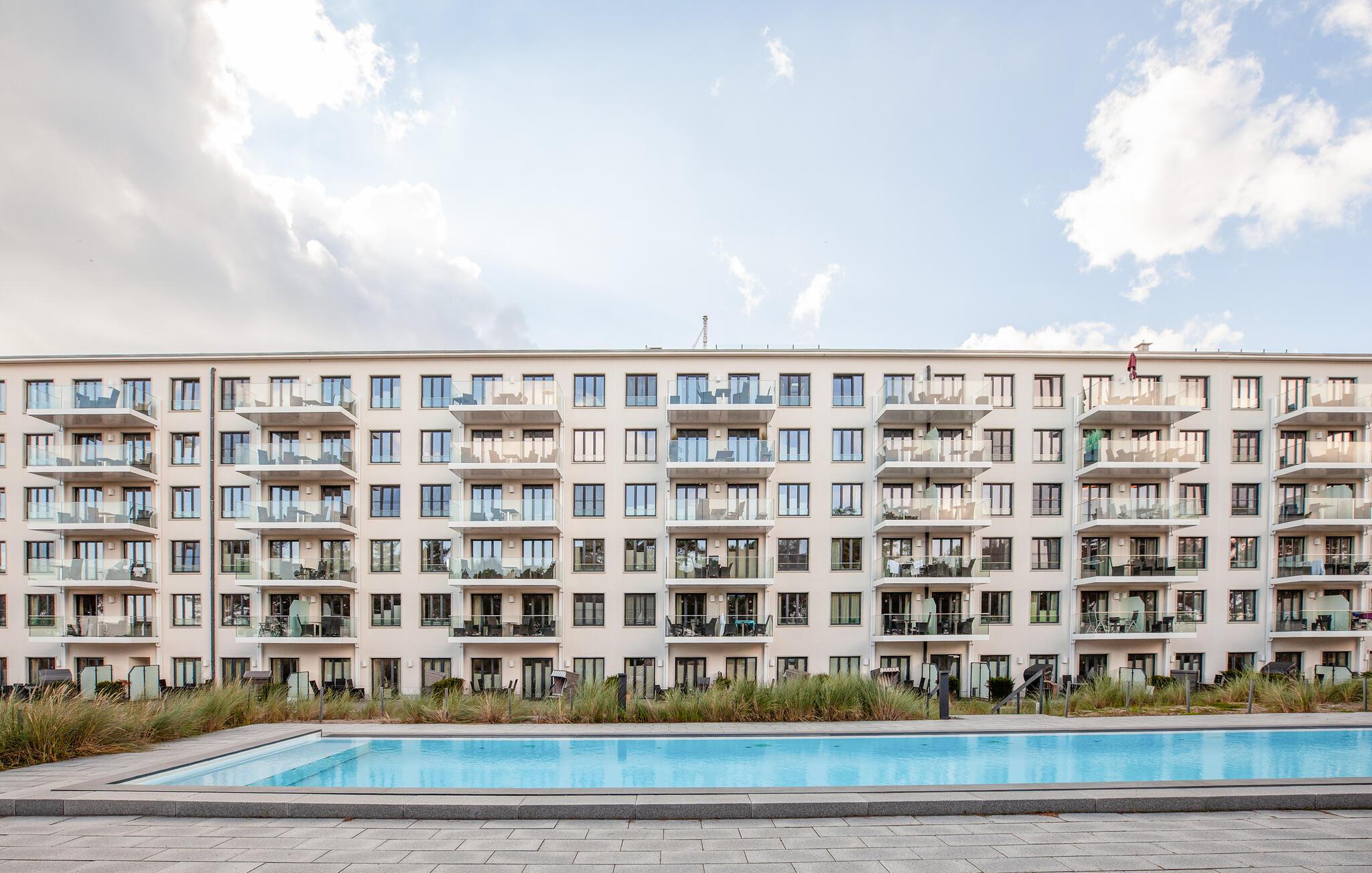 Moderne Ferienwohnung mit Meerblick, Pool und Wellnessbereich nur wenige Schritte vom Strand in Prora/Rügen.