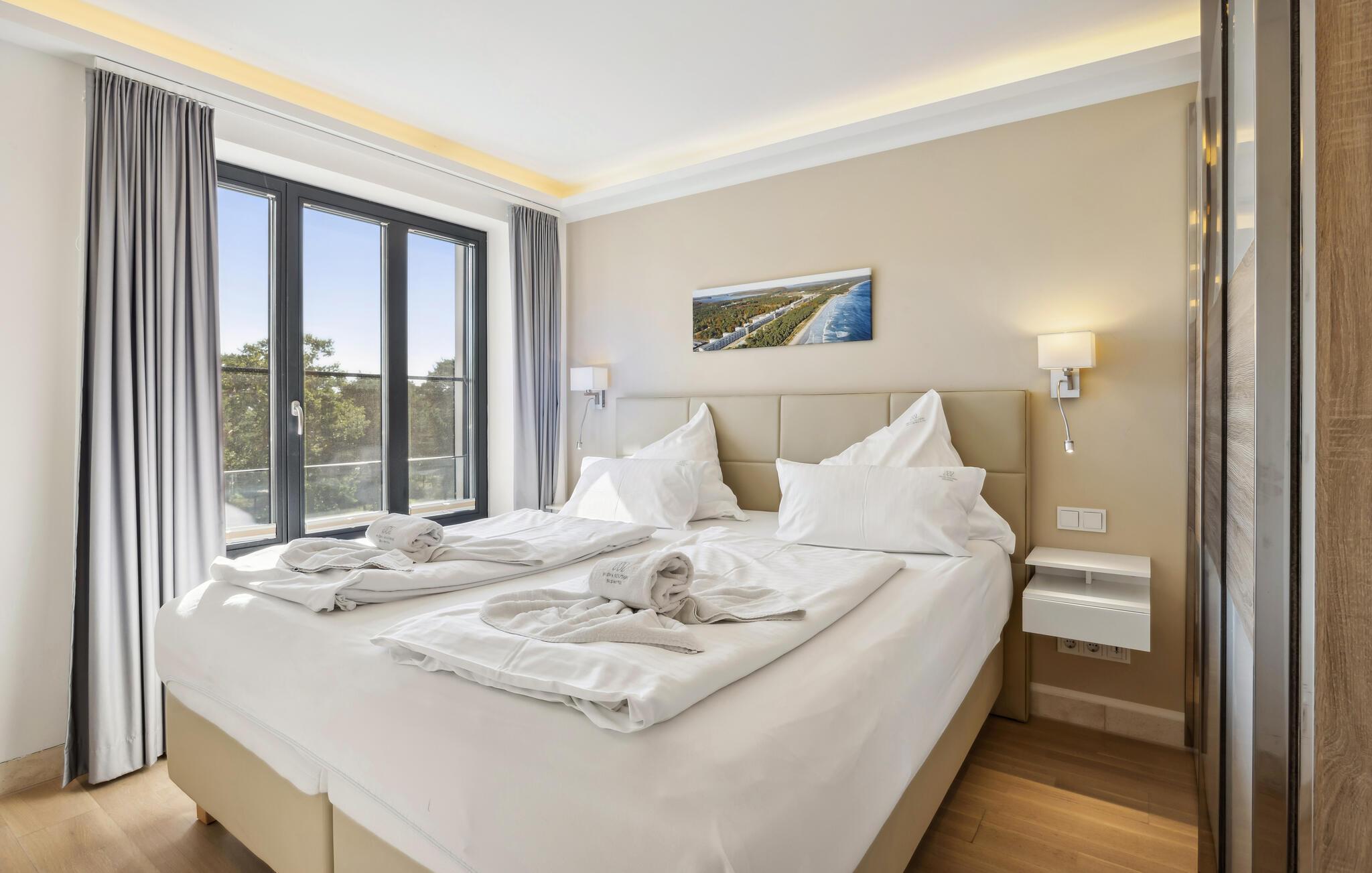 Moderne Ferienwohnung in Prora mit Meerblick, Poolzugang und Wellnessbereich für erholsame Urlaubstage.