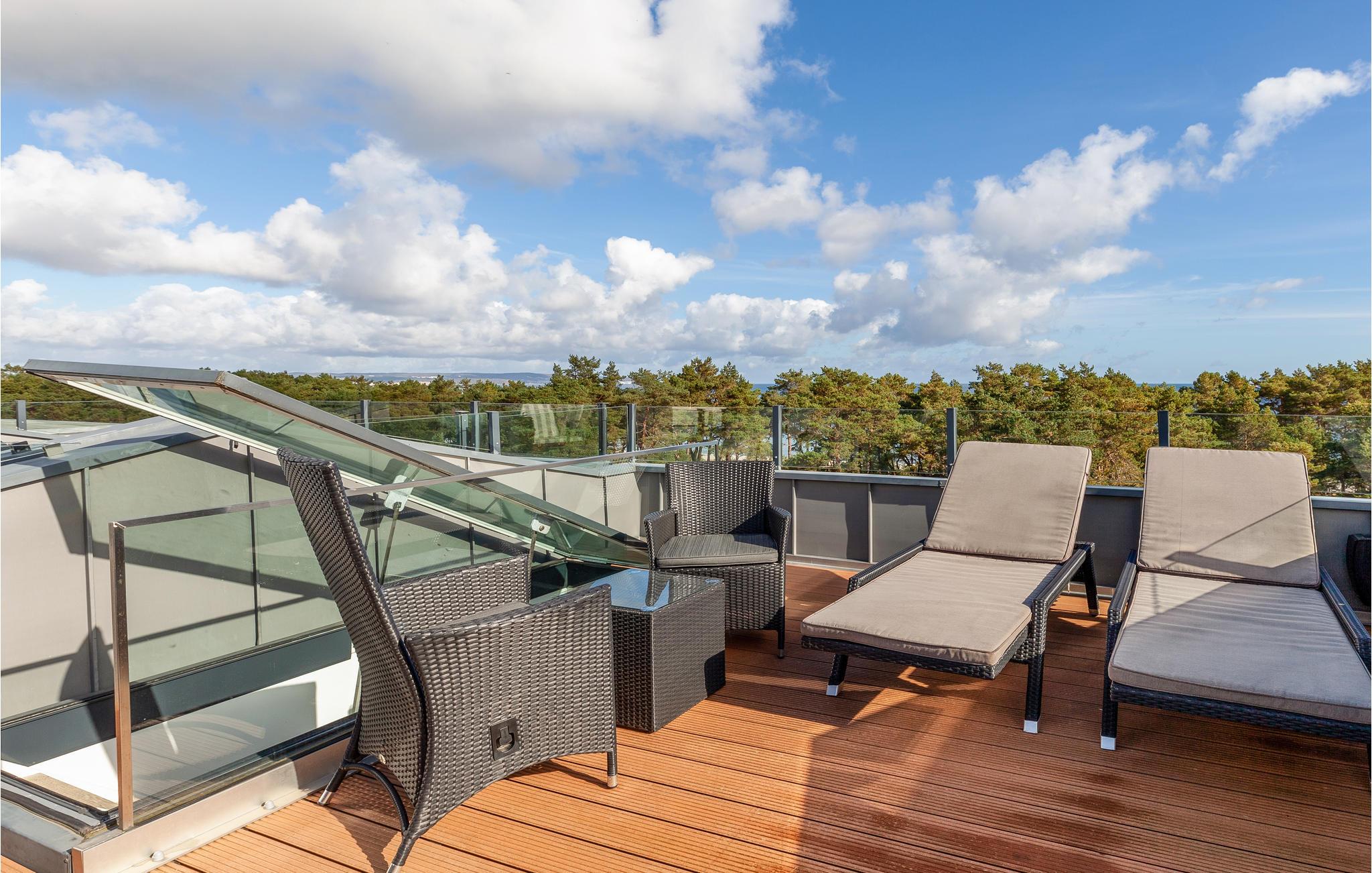 Moderne Penthouse-Ferienwohnung in Prora mit Meerblick, Pool und Wellnessbereich nur wenige Schritte vom Strand entfernt.