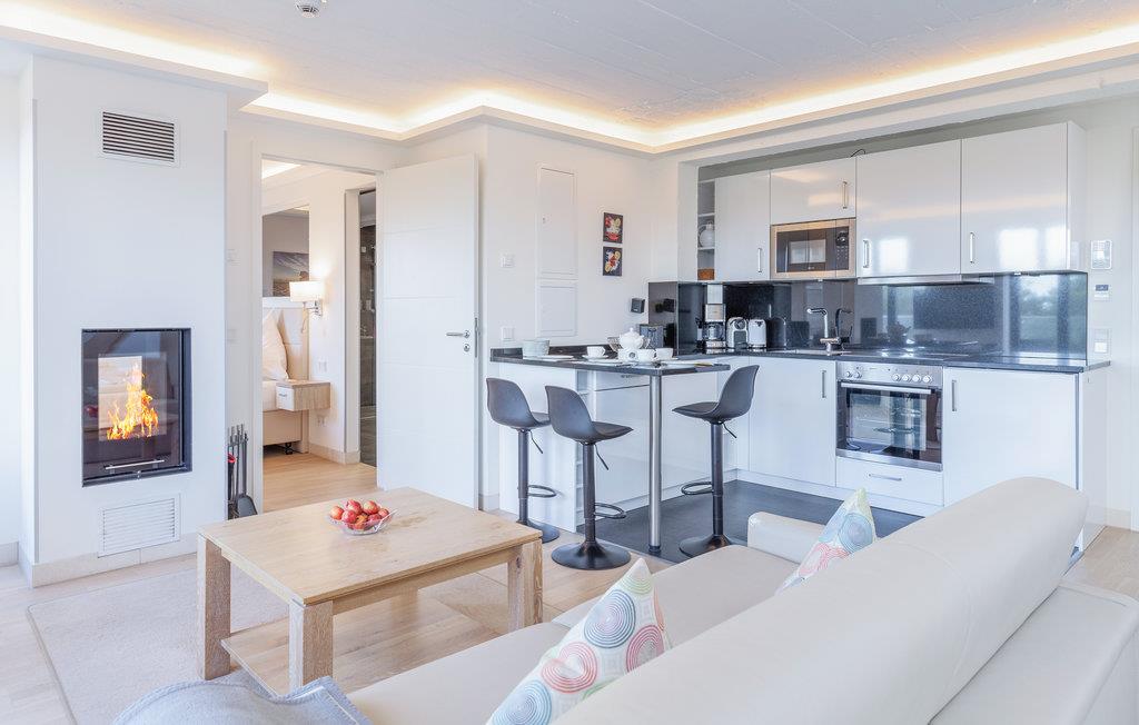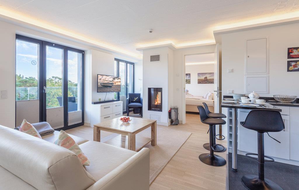 Exklusive Design-Ferienwohnung in Prora mit Dachterrasse, Kaminofen und direktem Ostseeblick für Luxus und Entspannung.